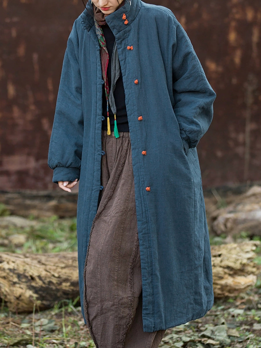 Women Winter Pure Color Stand Collar Padded Overcoat