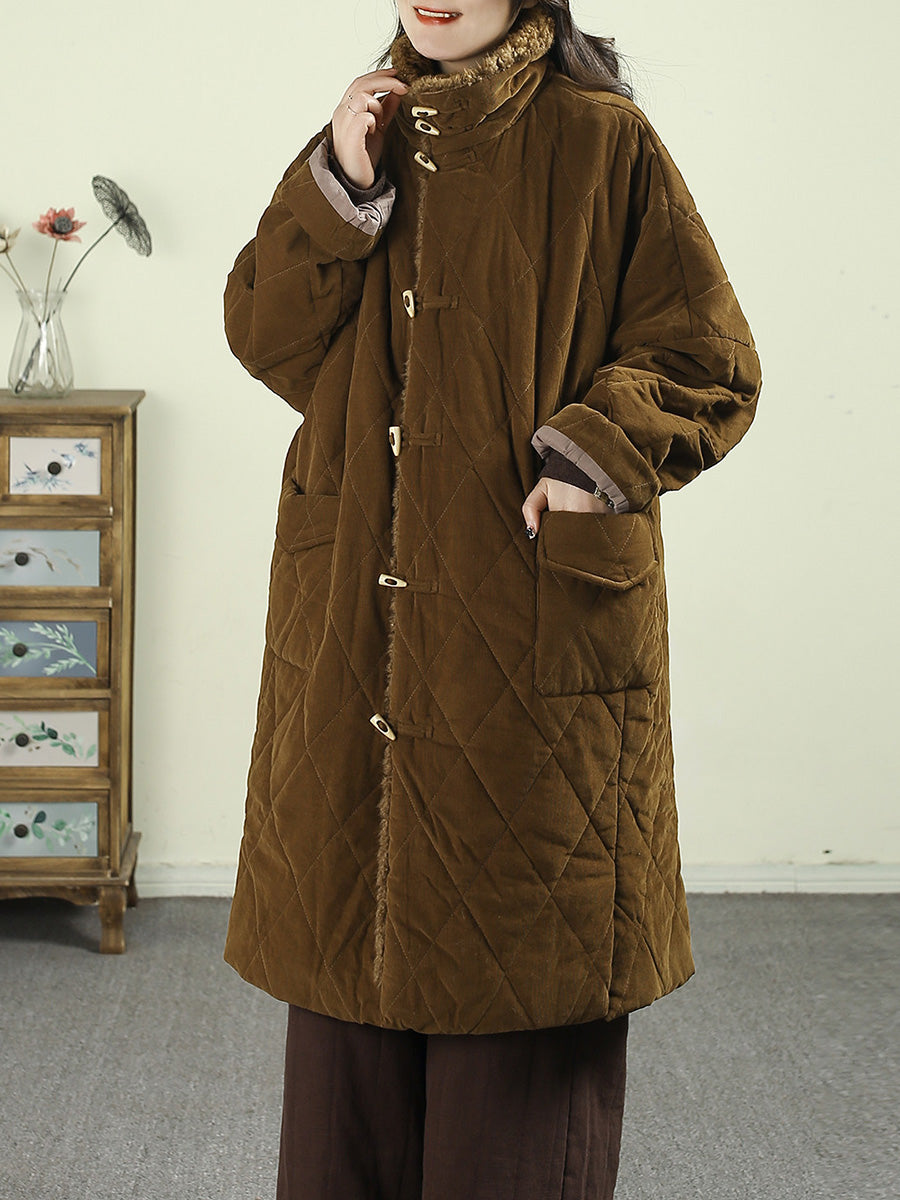 Women Winter Retro Corduroy Fleece Spliced Padded Coat