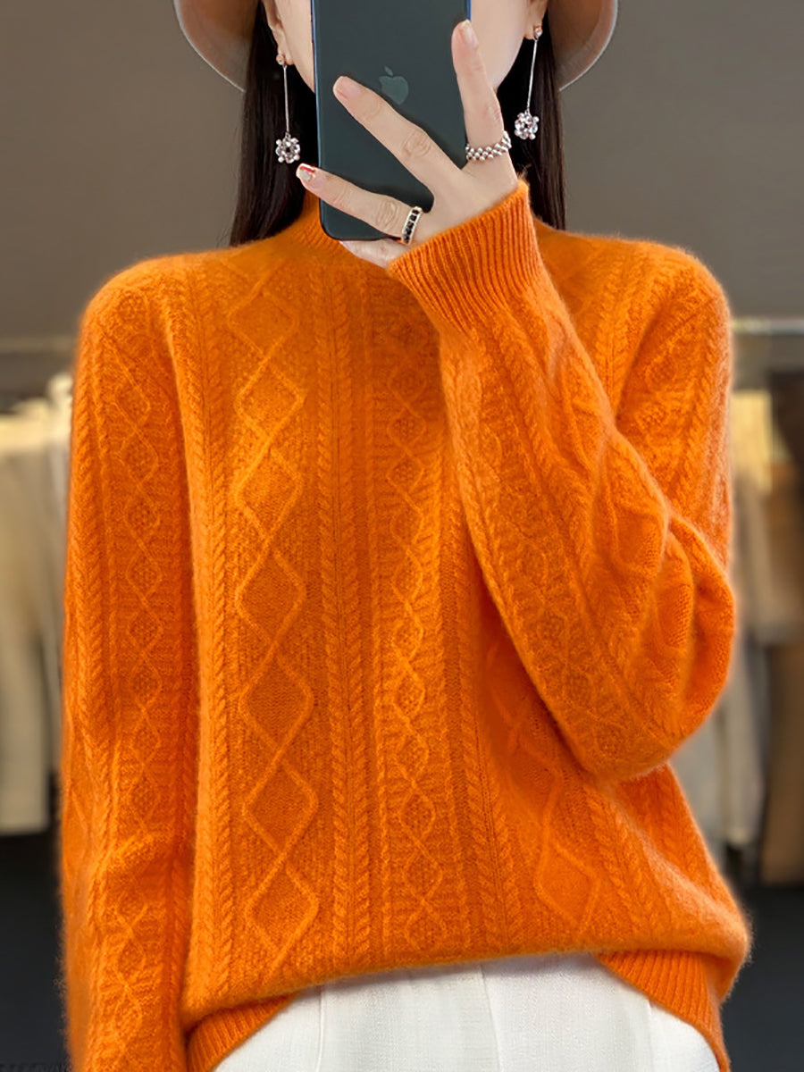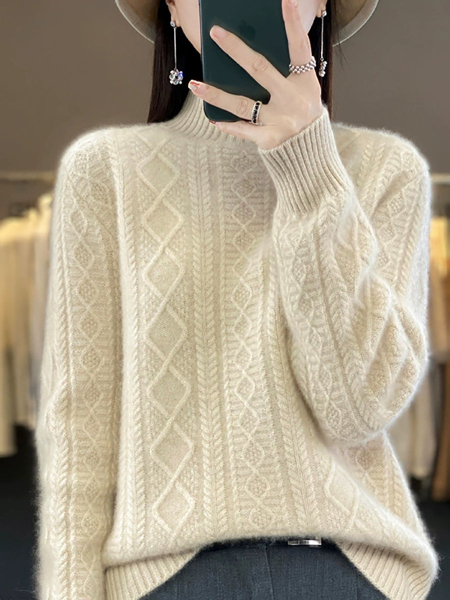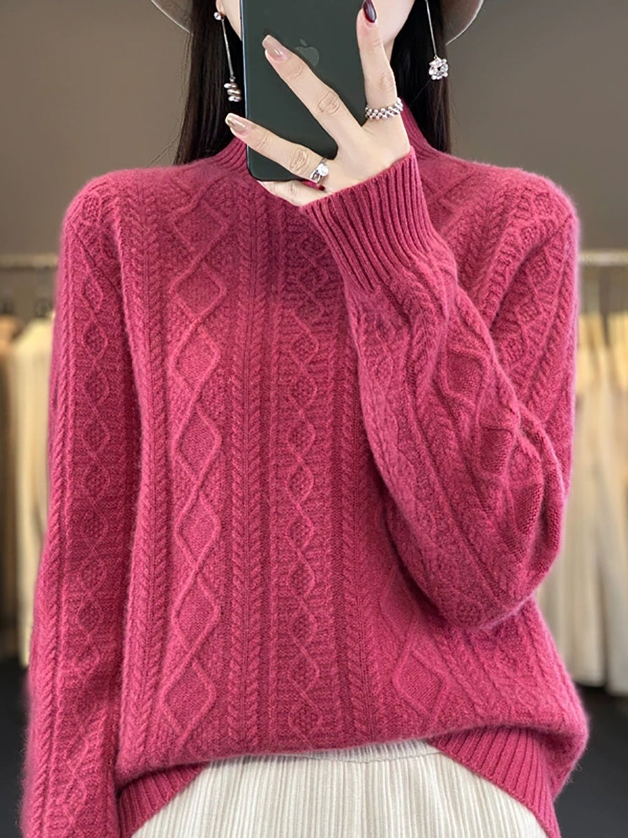Women Autumn Artsy Jacquard Wool Half-Turtleneck Sweater