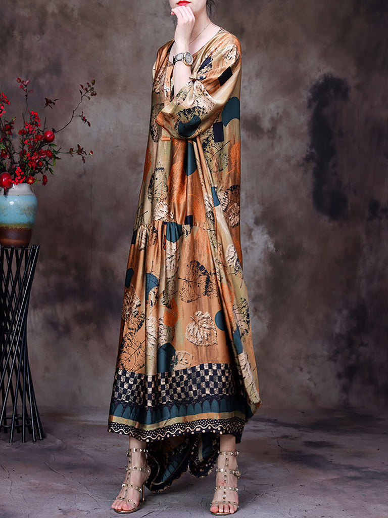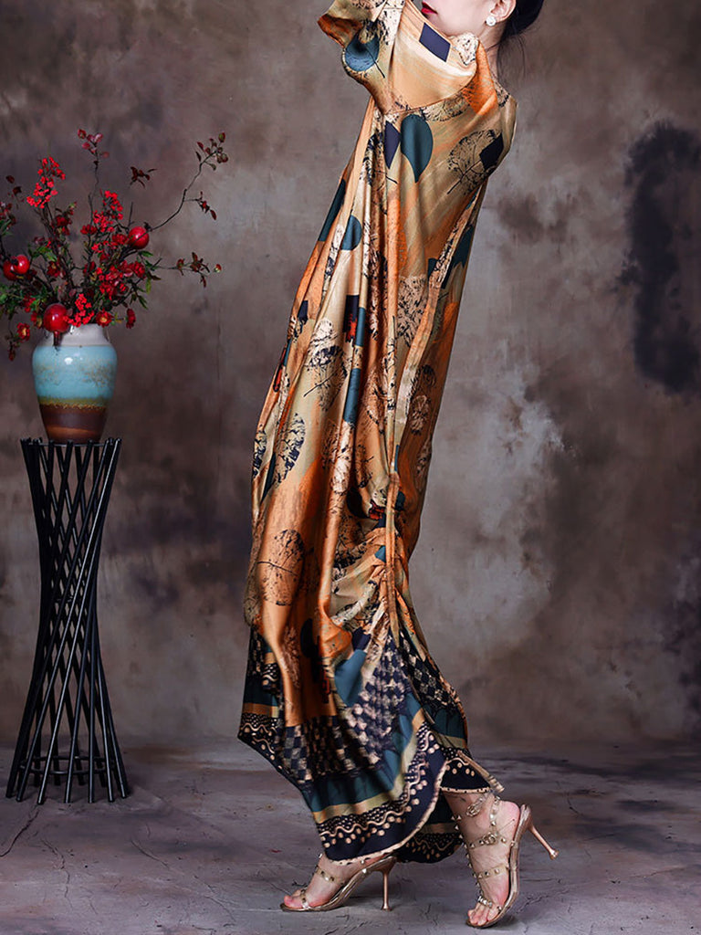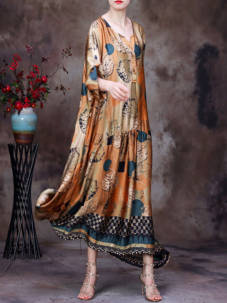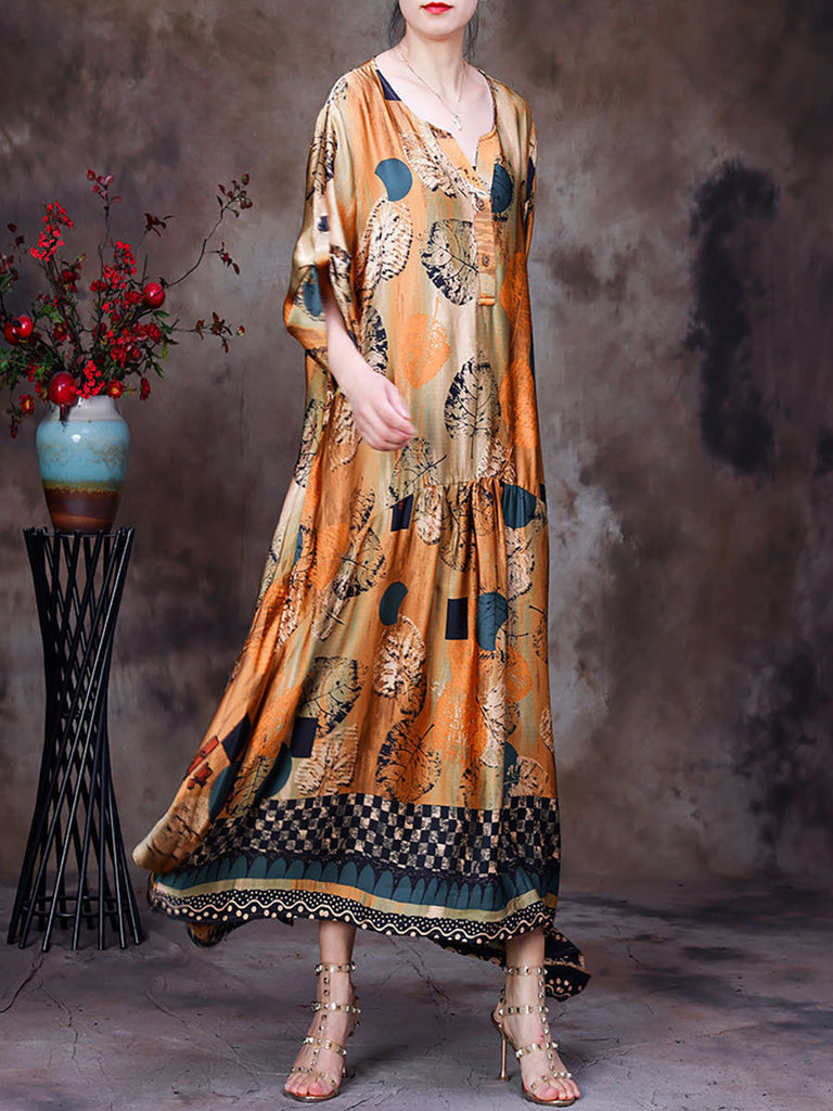 Plus Size Floral Vintage Women Batwing Sleeve Maxi Dress