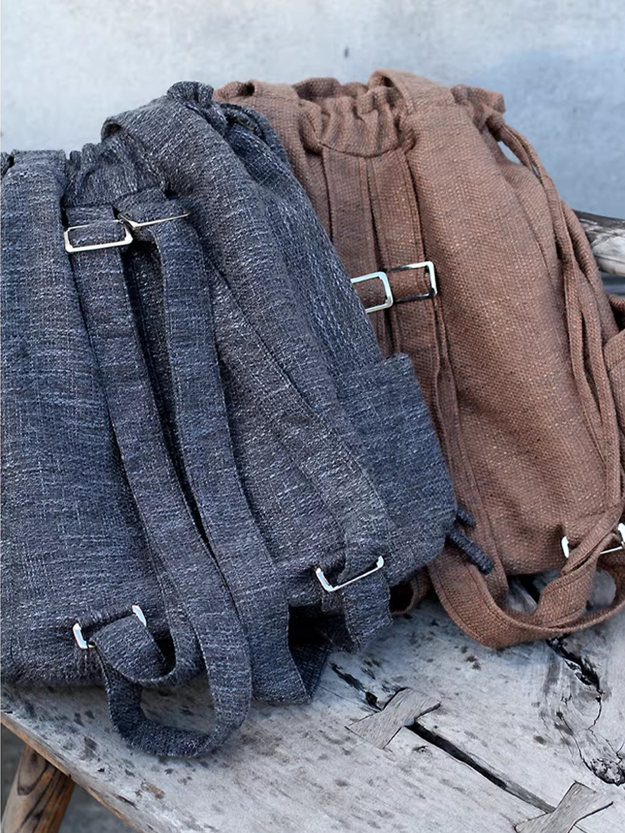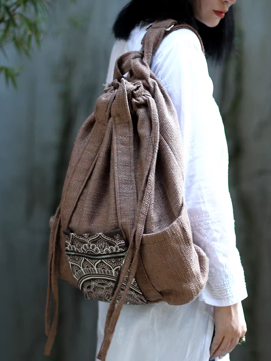 Ethnic Mori-style Spliced Drawstring Backpack Shoulder Bag