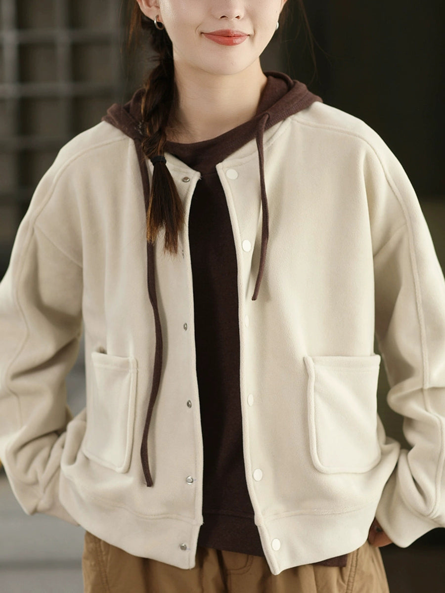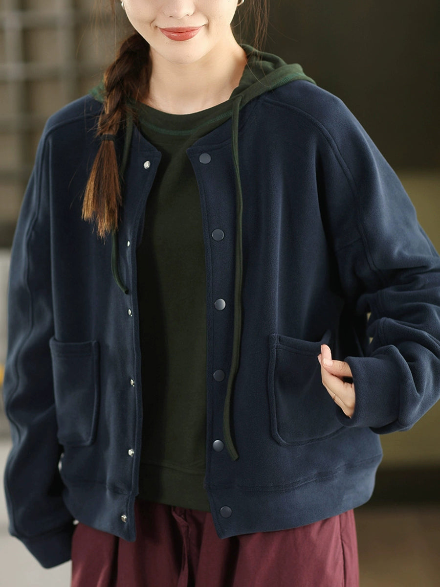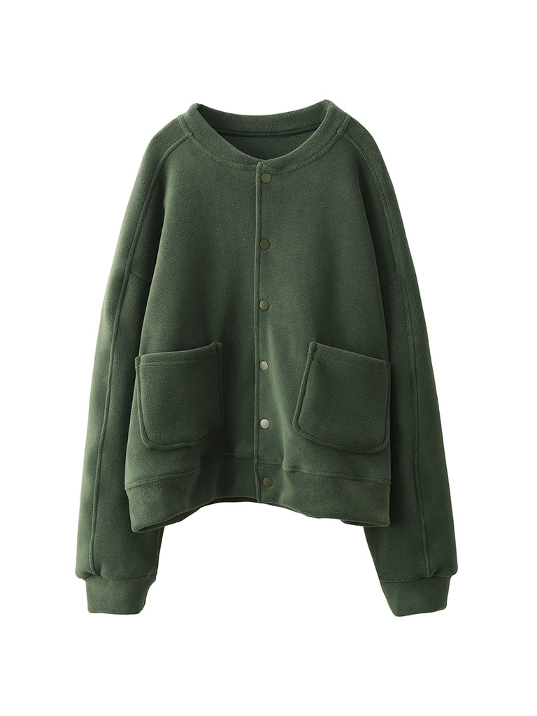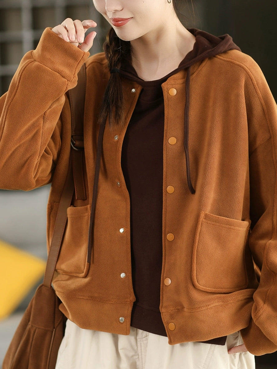 Women Winter Casual Pure Color O-Neck Fleece Coat
