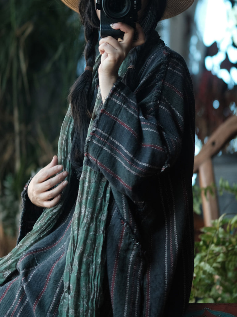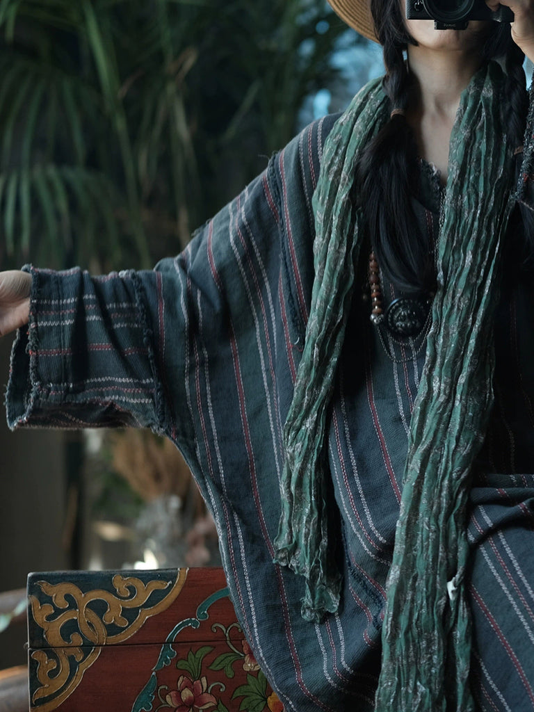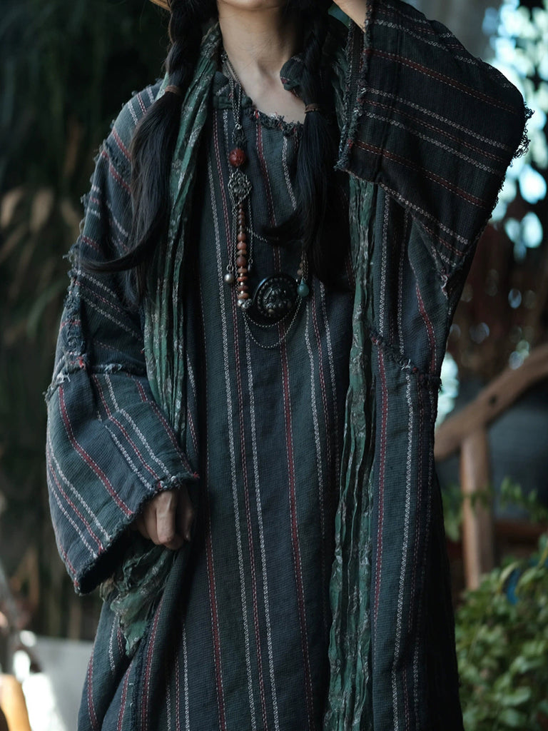 Women Autumn Retro O-Neck Stripe Dress