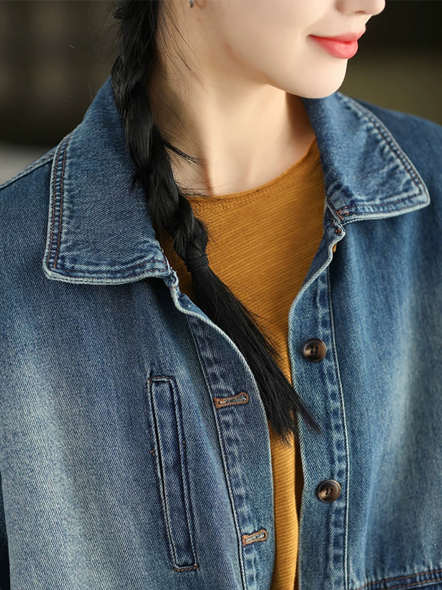 Women Spring Retro Pure Color Denim Coat
