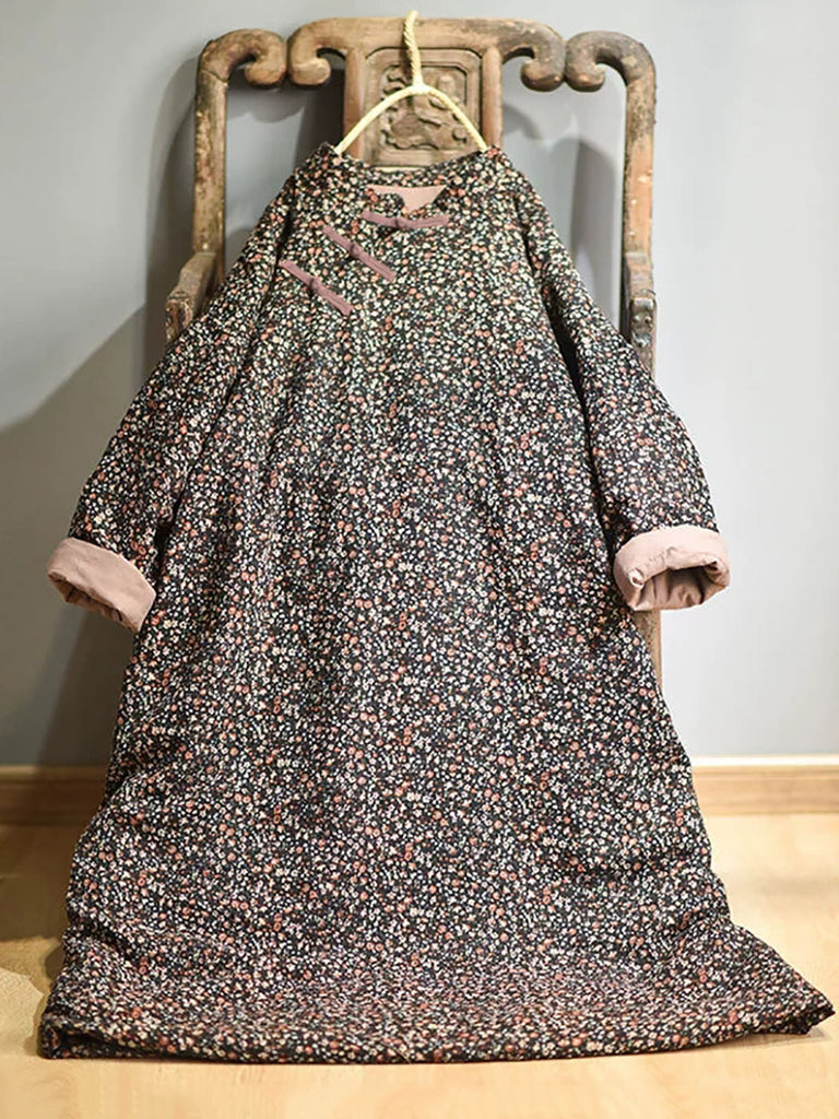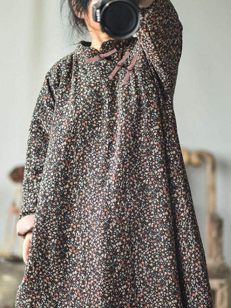 Plus Size - Autumn Women Loose Floral Cotton Dress