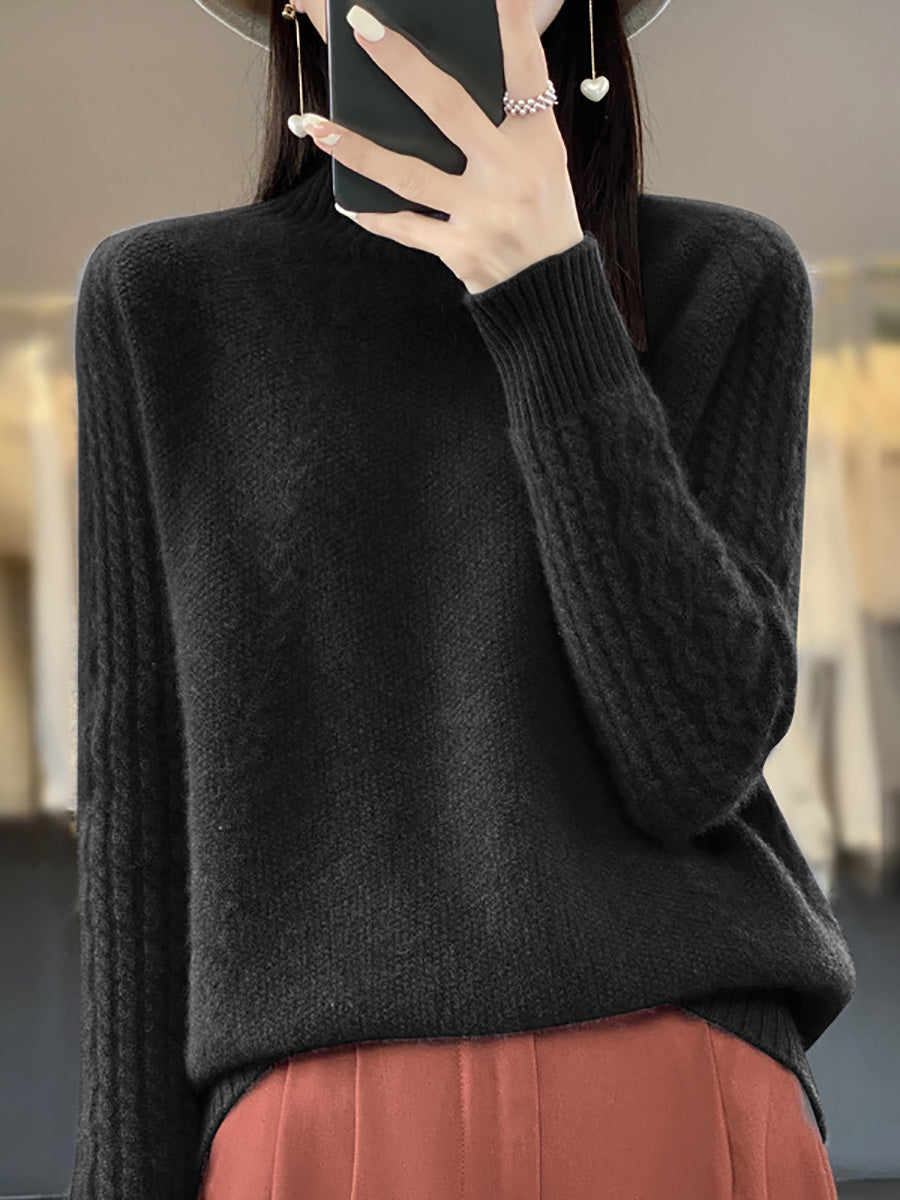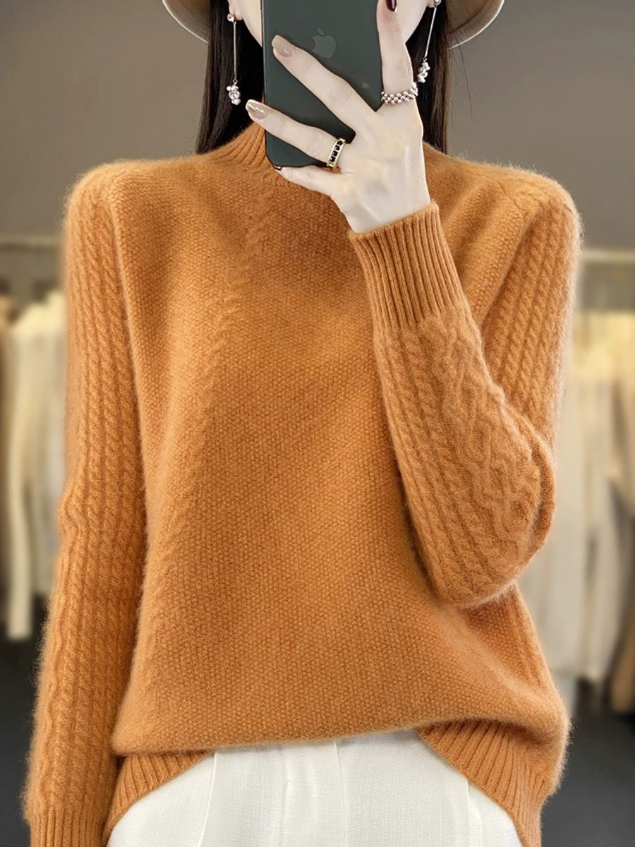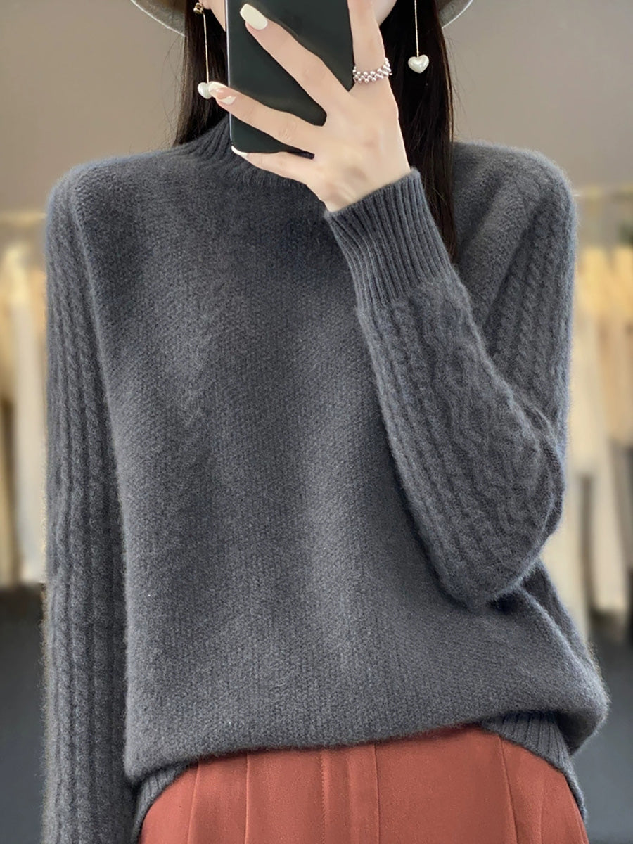 Women Autumn Artsy Pure Color Wool Half-Turtleneck Sweater