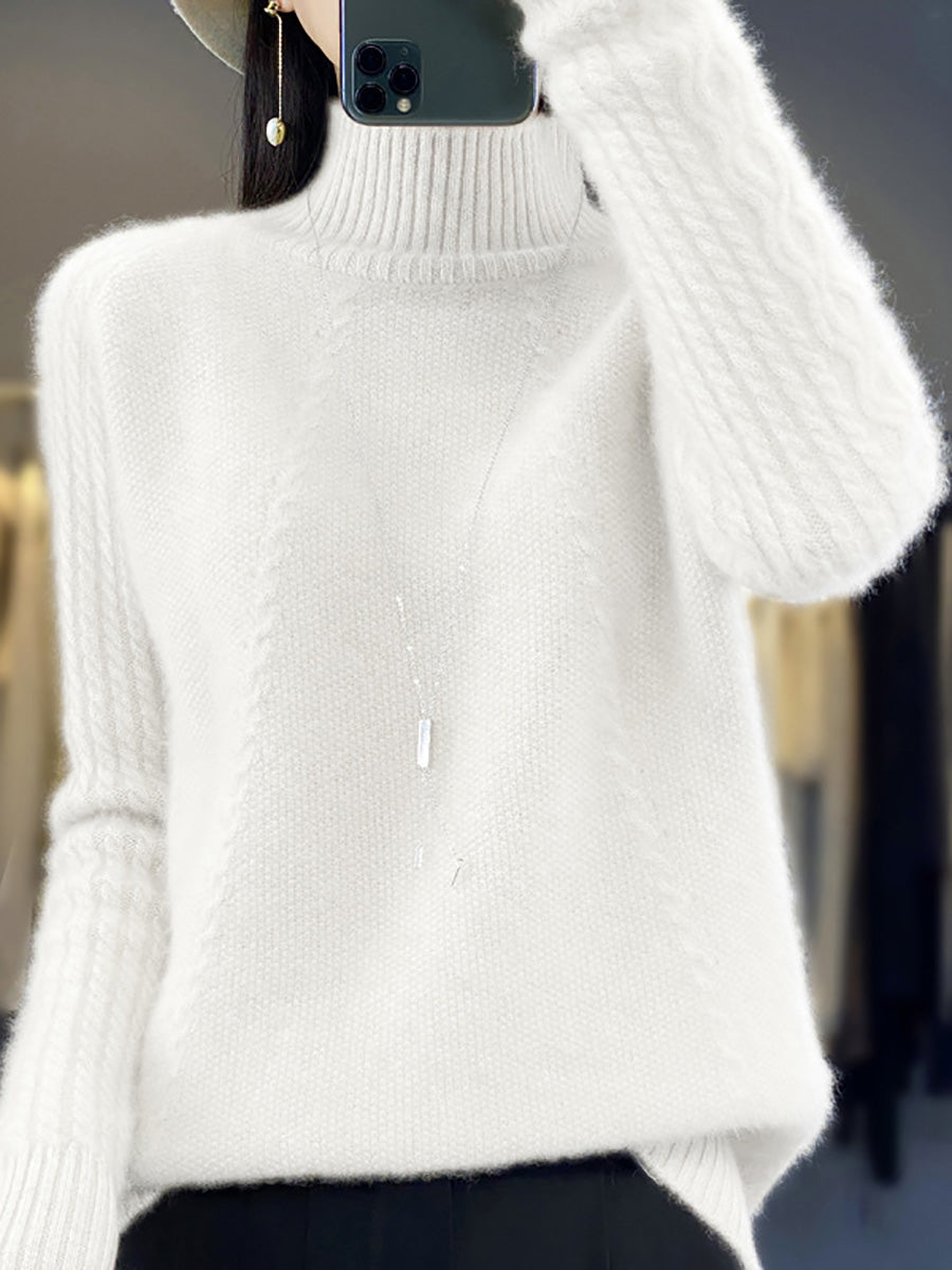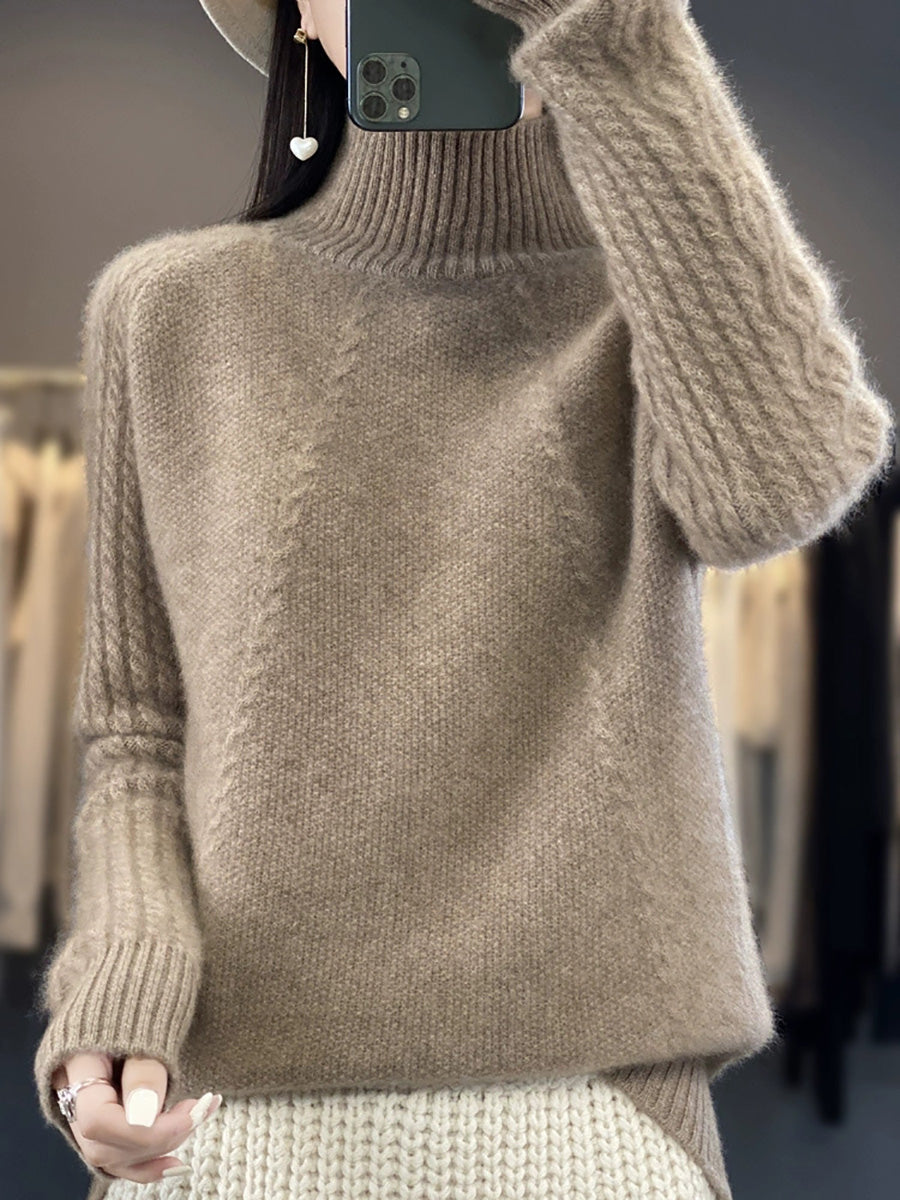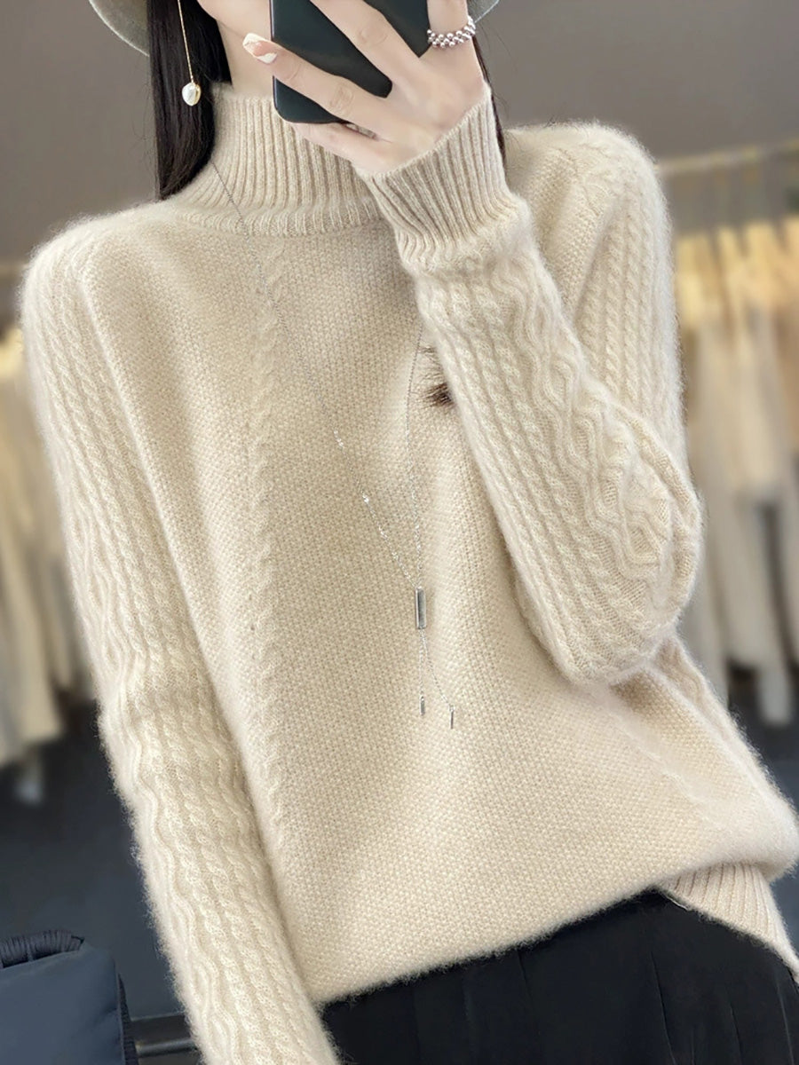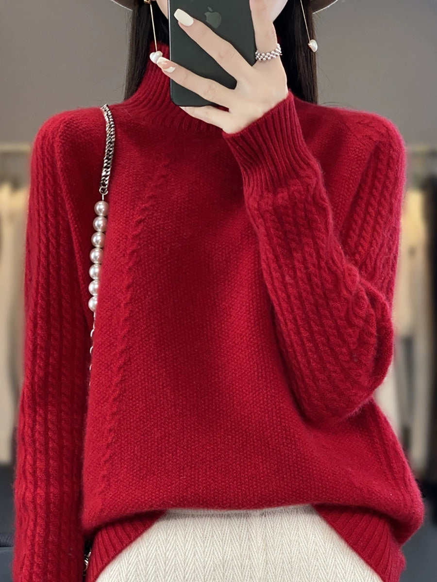 Women Autumn Artsy Pure Color Wool Half-Turtleneck Sweater