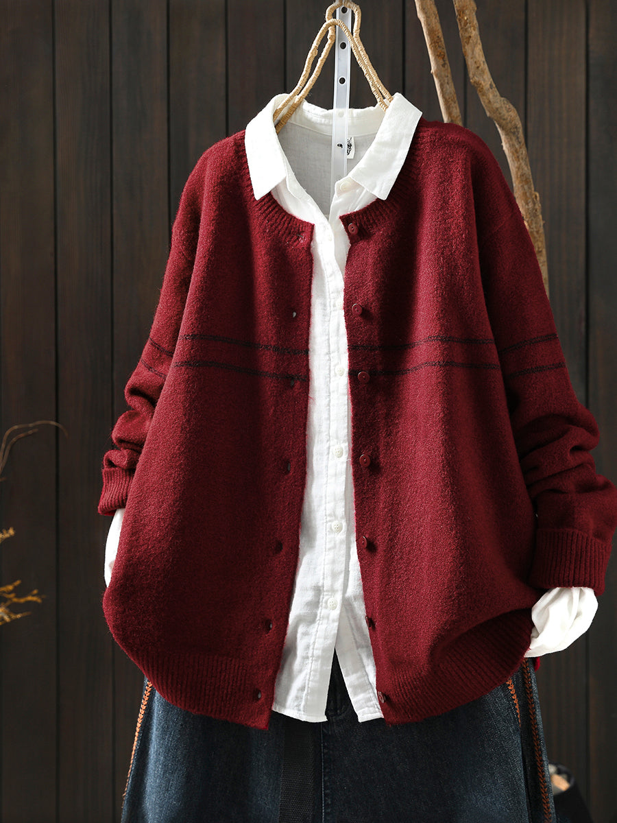 Women Autumn Artsy Stripe Knitted O-Neck Sweater