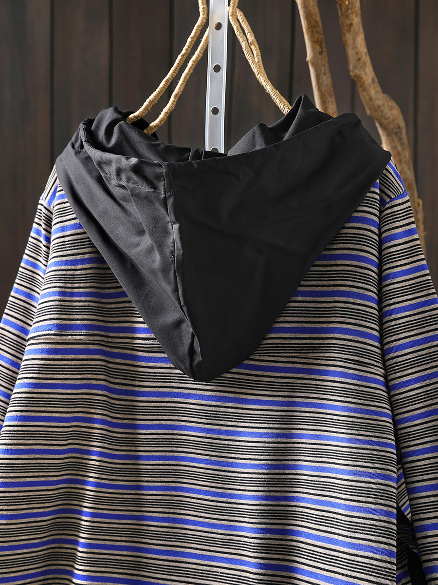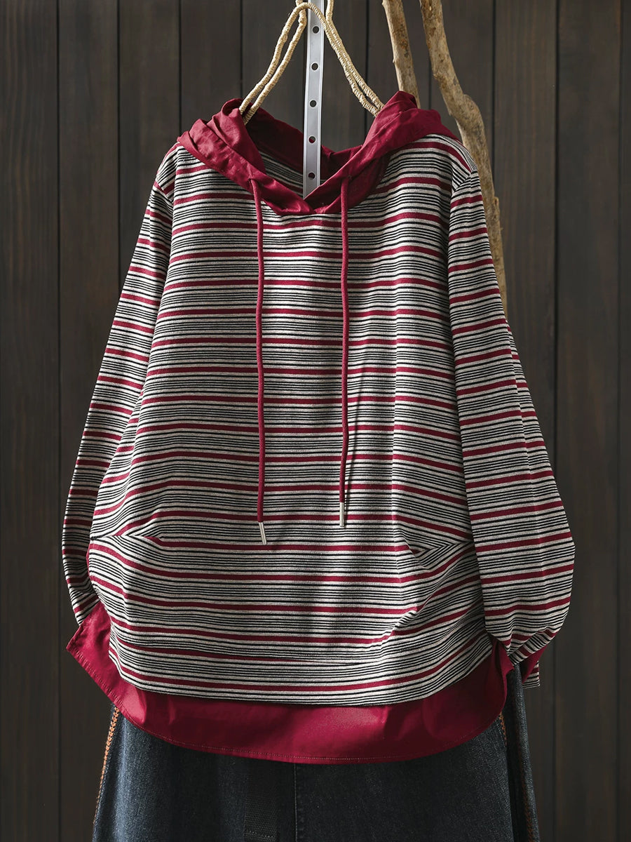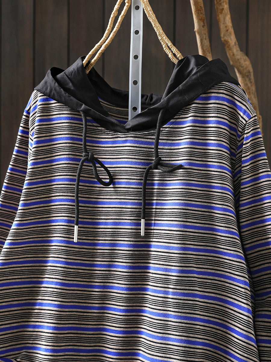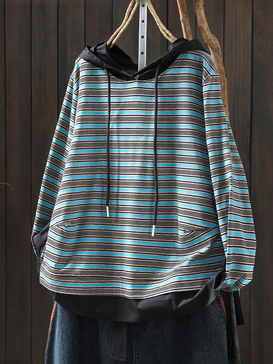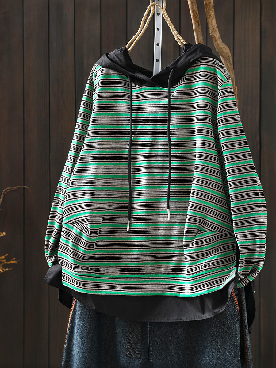 Women Spring Artsy Stripe Spliced Cotton Hoodie