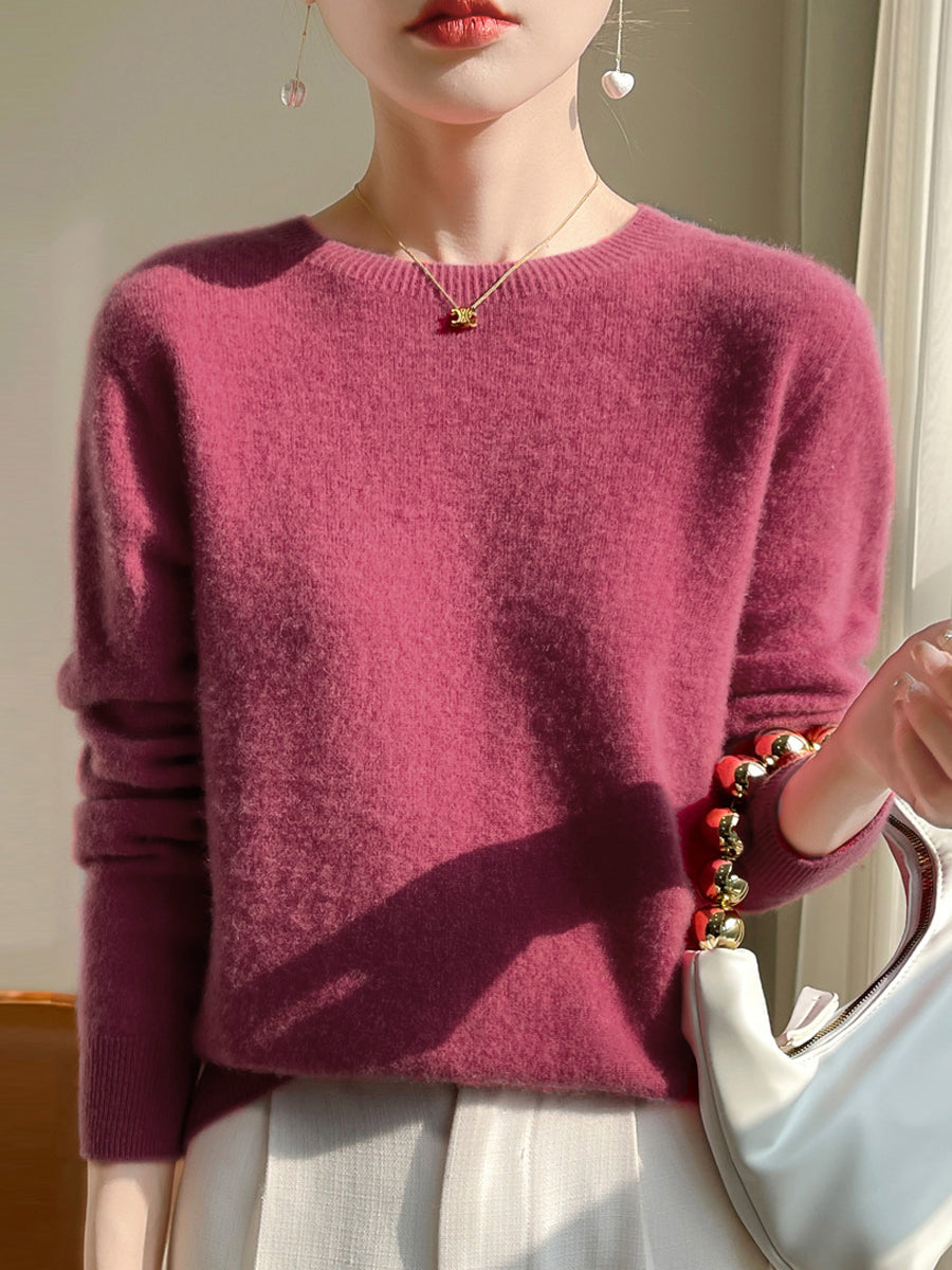 Women Autumn Casual Pure Color O-Neck Sweater