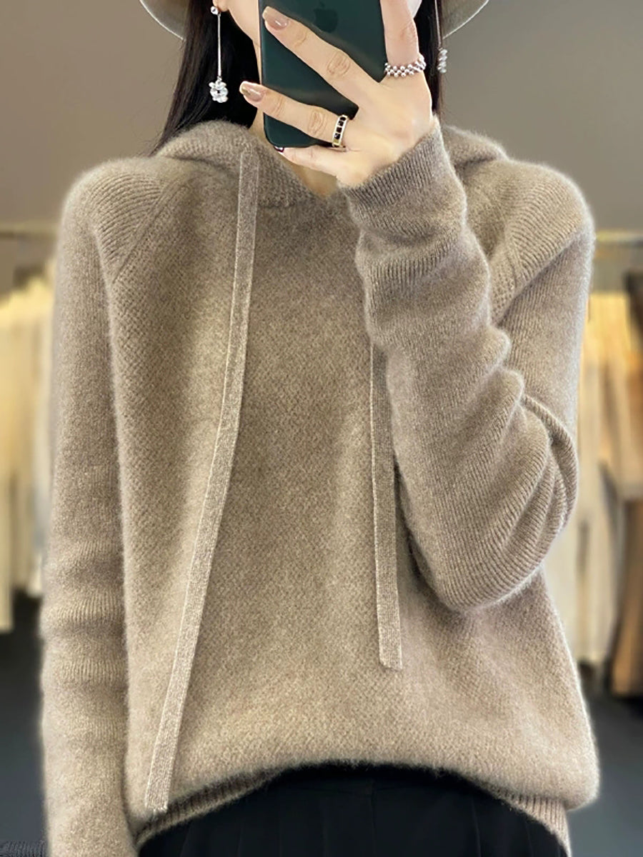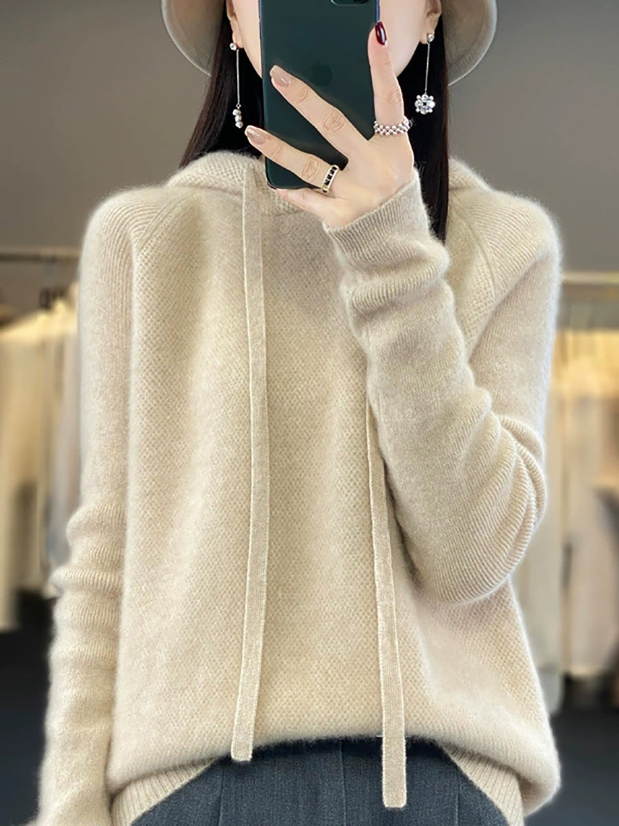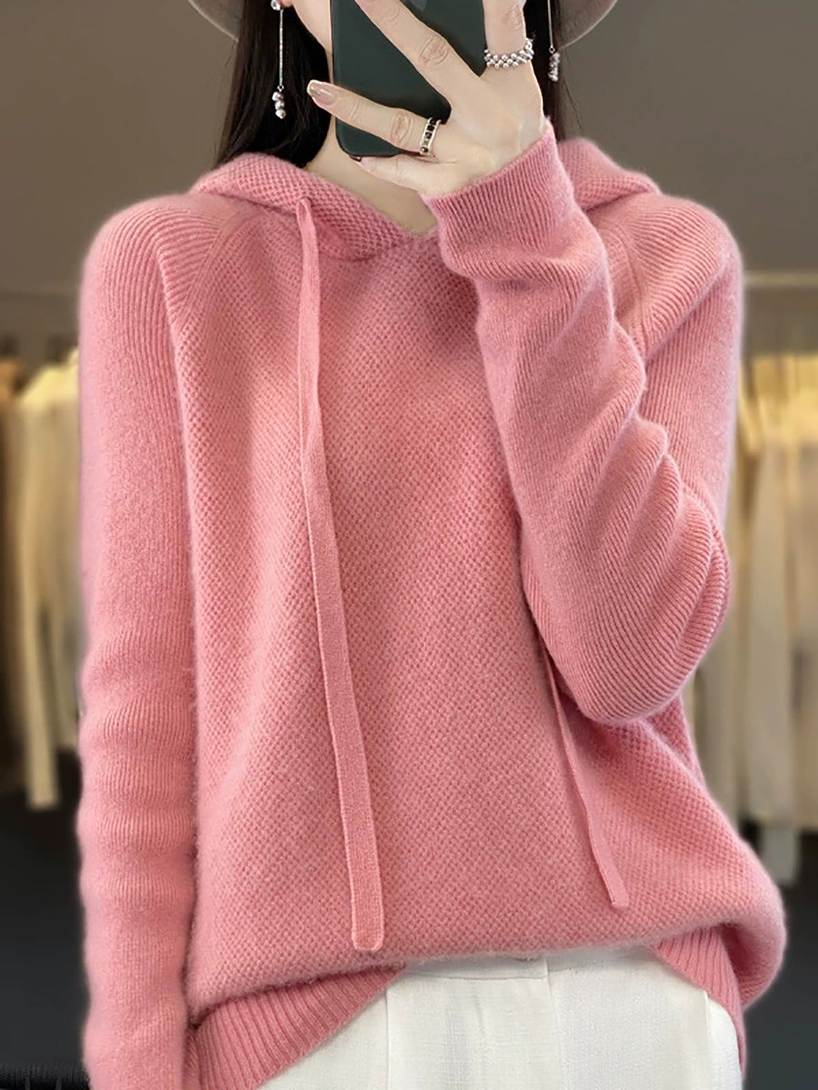 Women Casual Spring Pure Color Hoodie Sweater