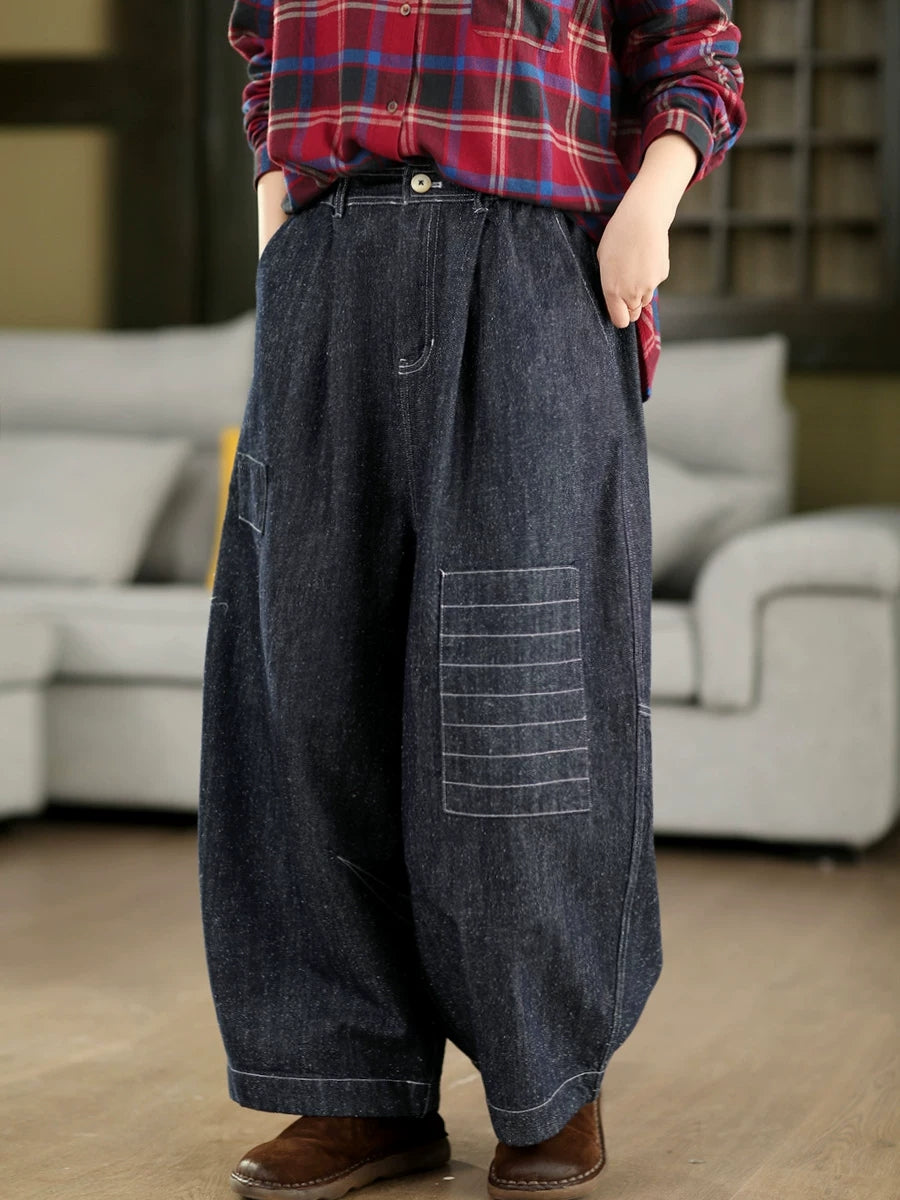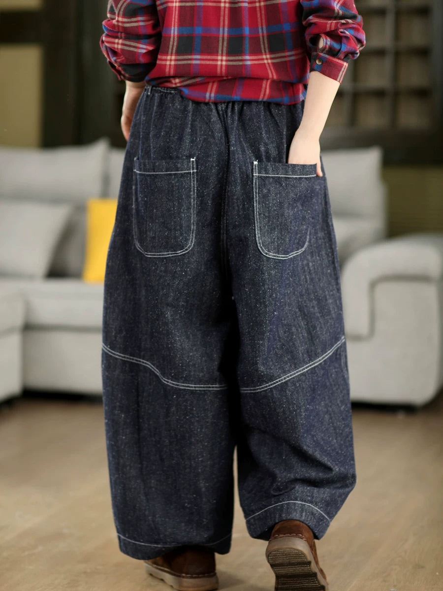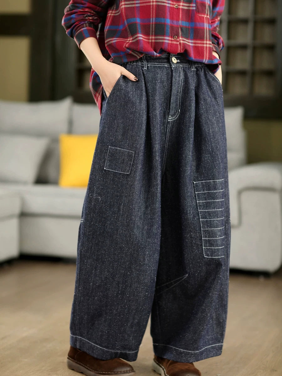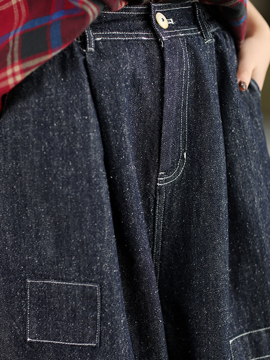 Women Spring Vintage Denim Wide-leg Pants