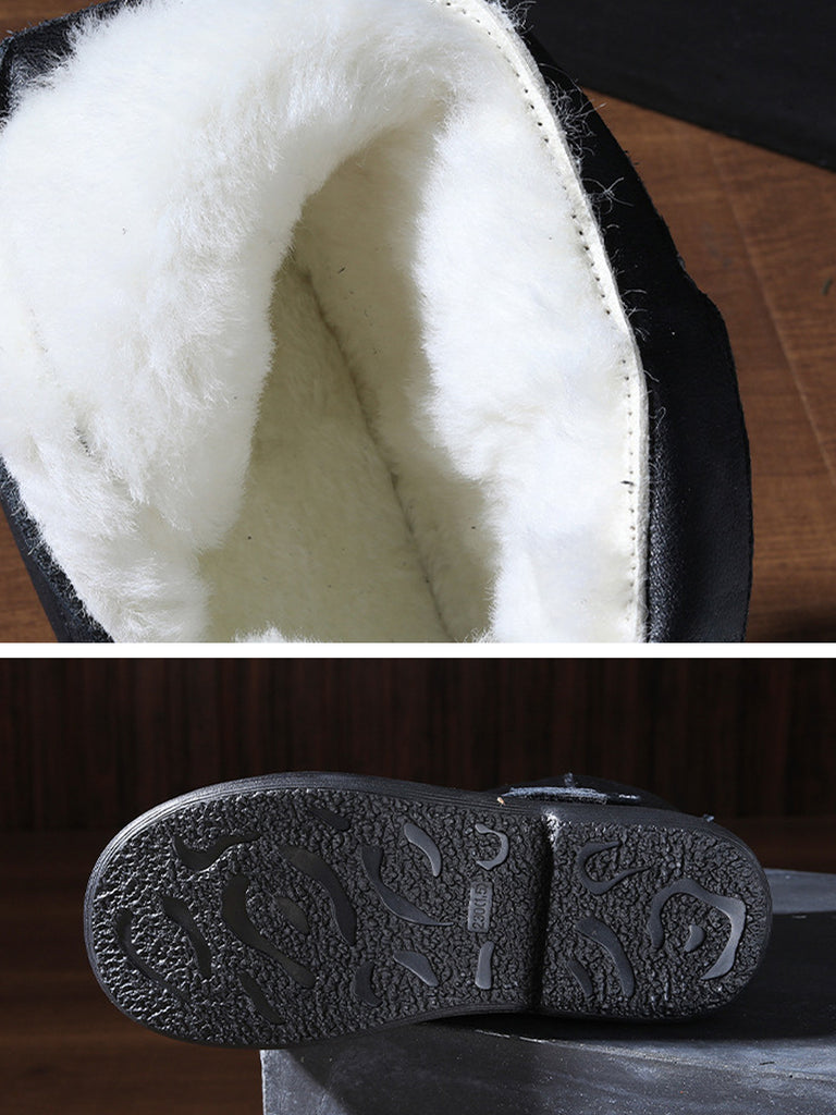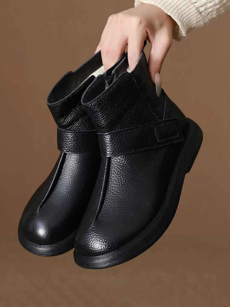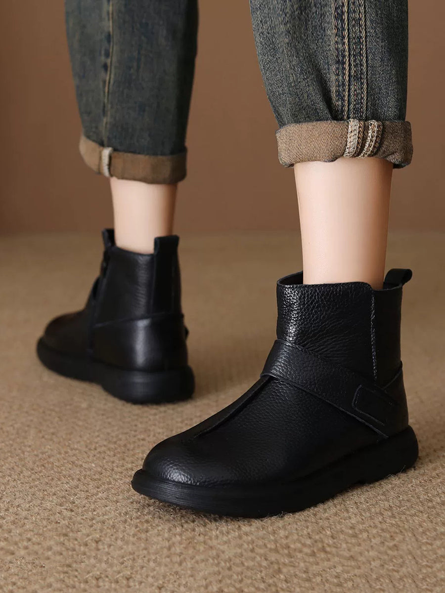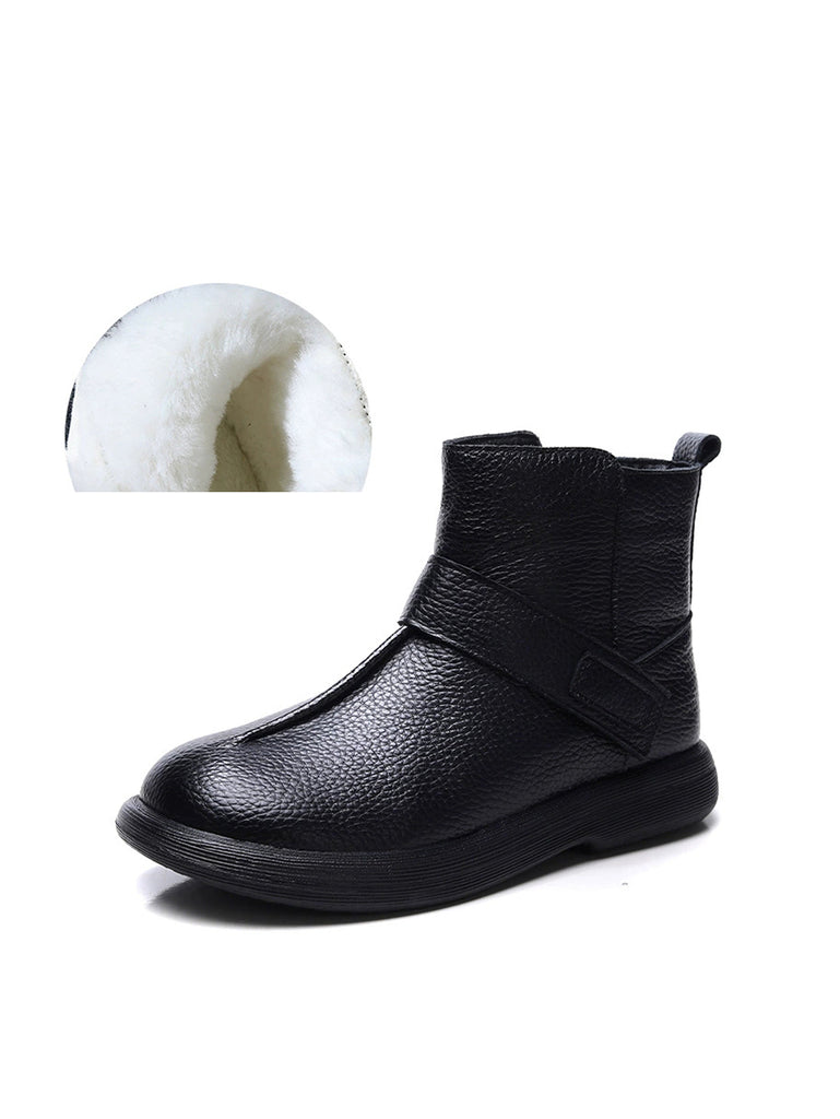 Women Vintage Genuine Leather Spliced Fleece-lined Ankle Boots