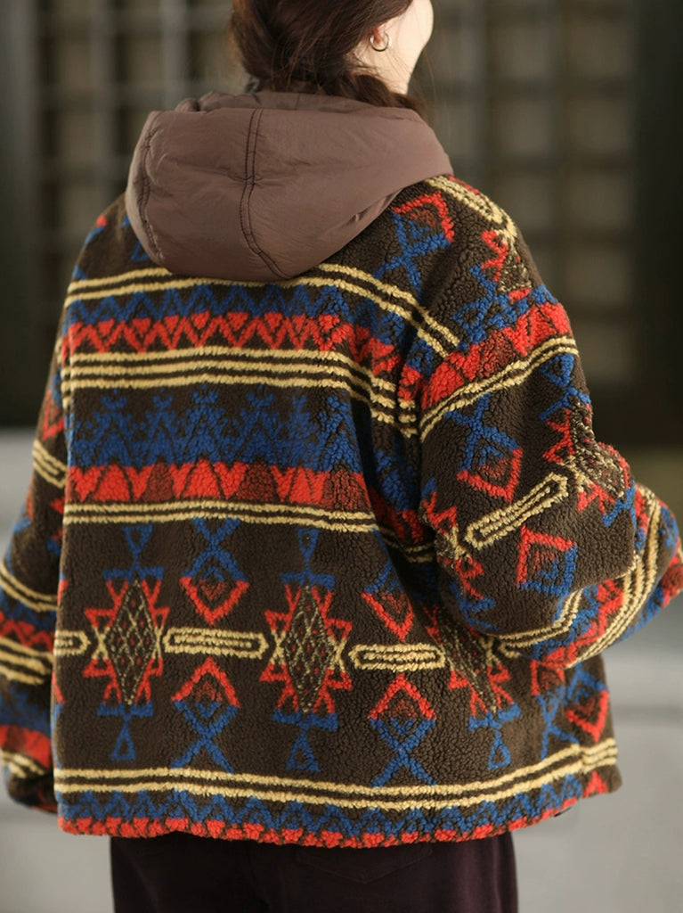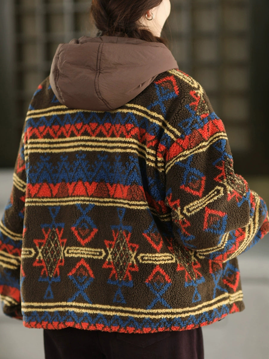 Women Winter Vintage Fleece Hooded Coat