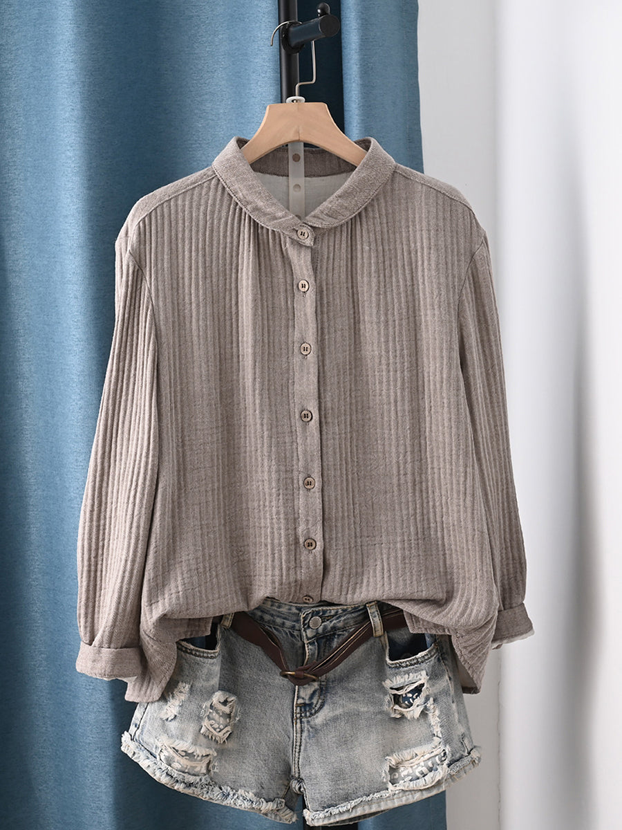 Women Spring Artsy Pure Color 100%Cotton Shirt