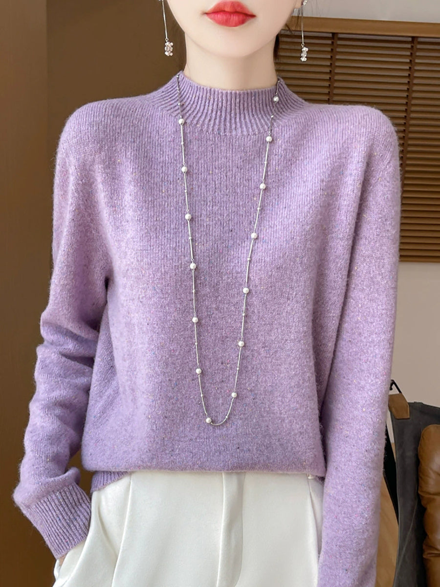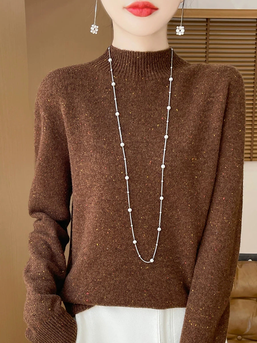 Women Casual Spring Pure Color Half-turtleneck Sweater