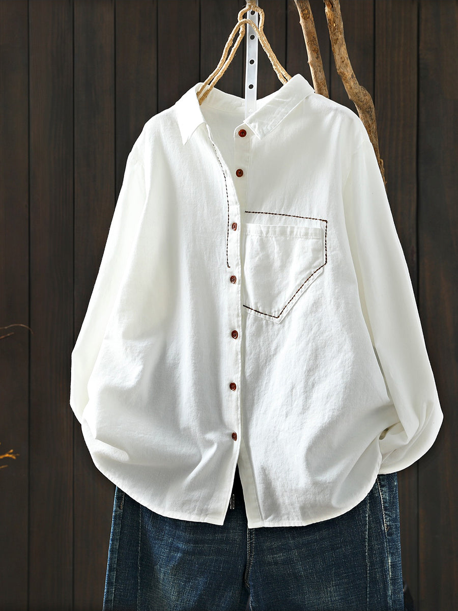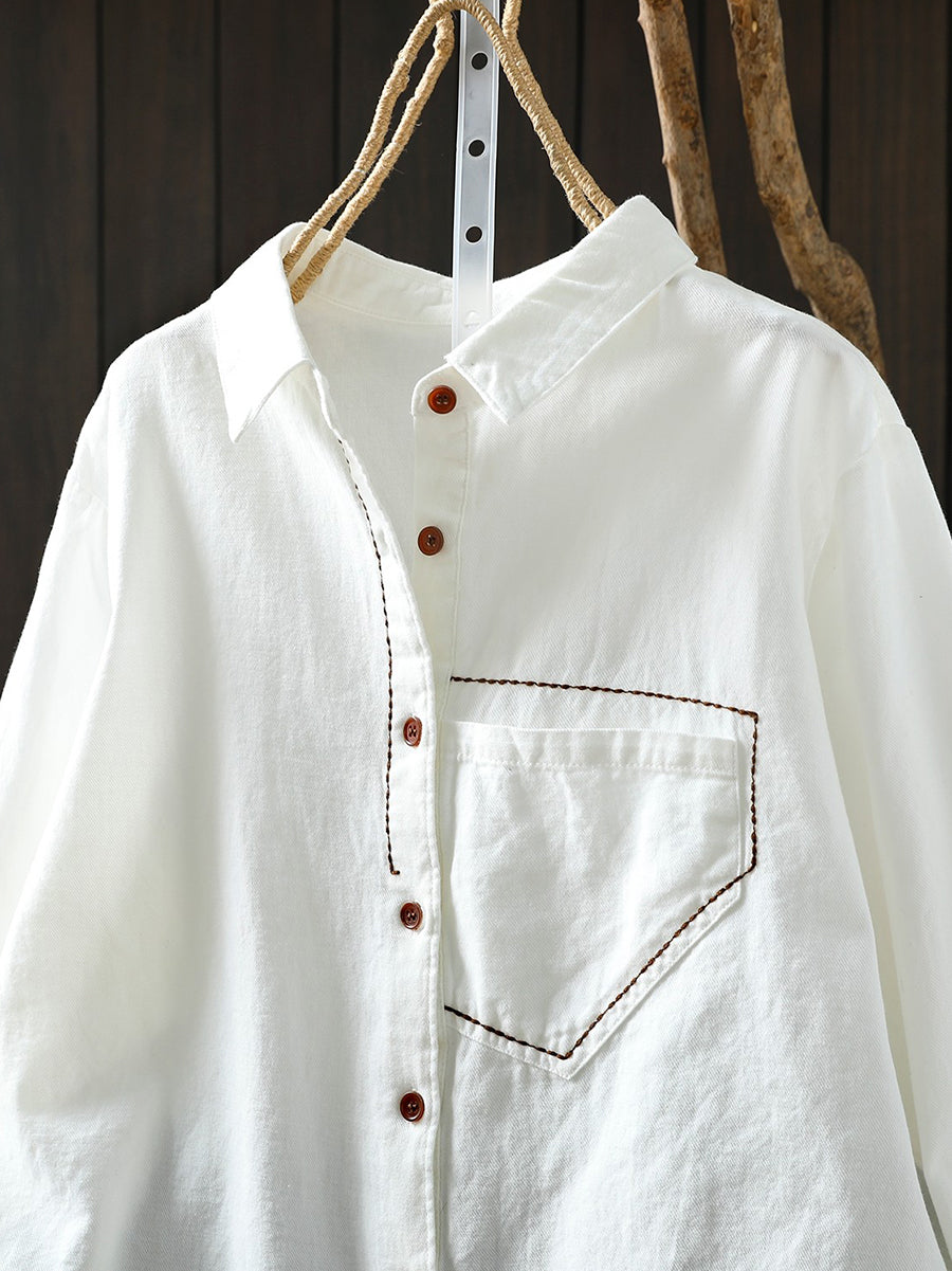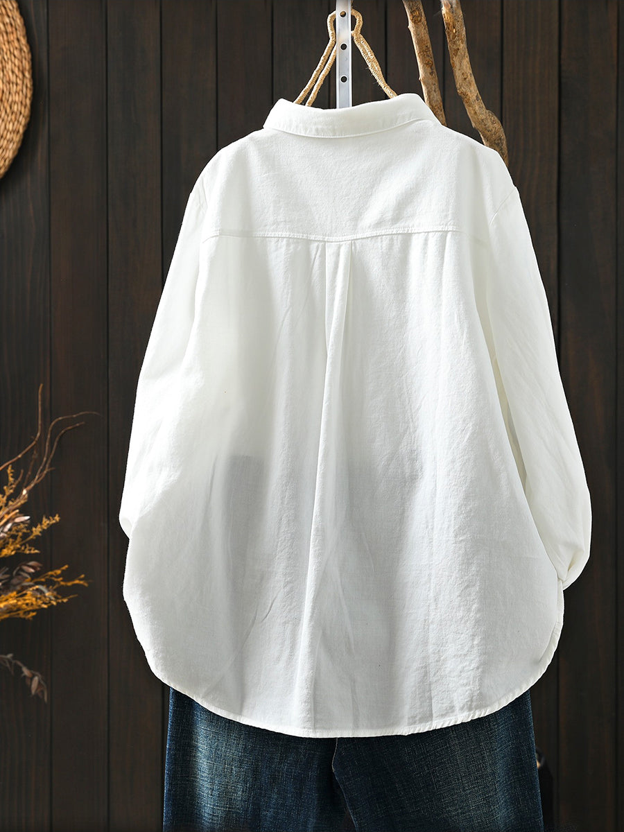 Women Spring Artsy 100%Cotton Turn-down Collar Shirt