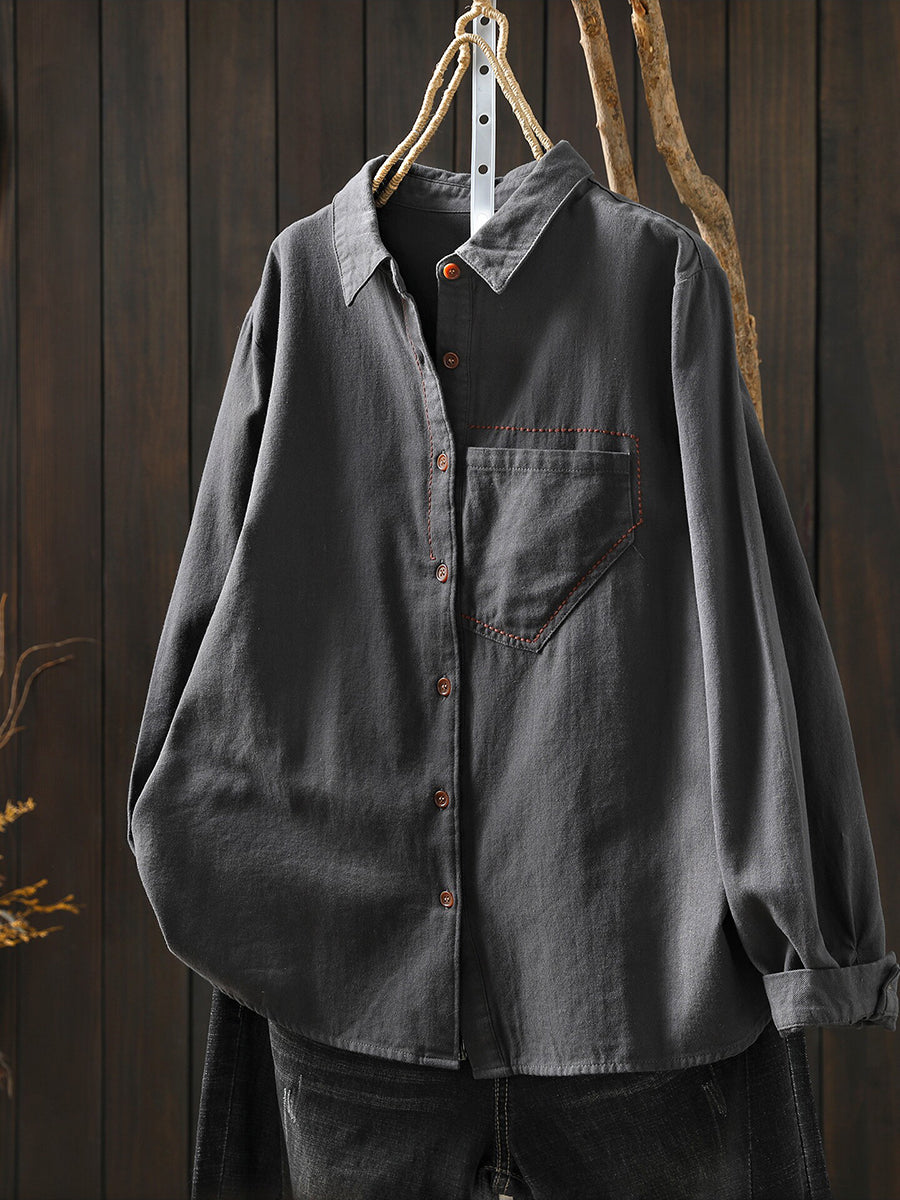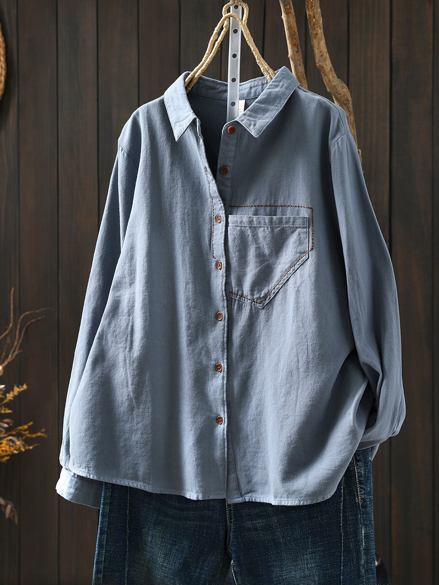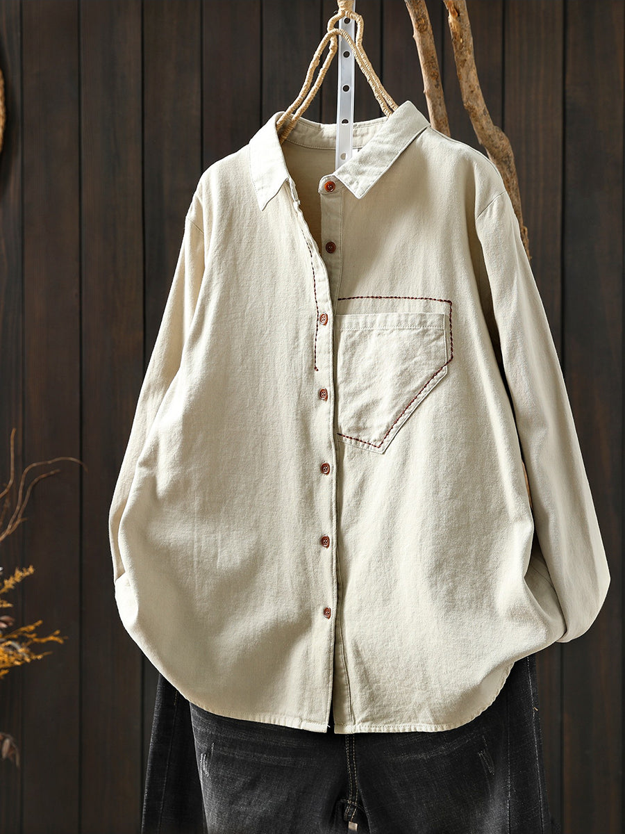 Women Spring Artsy 100%Cotton Turn-down Collar Shirt