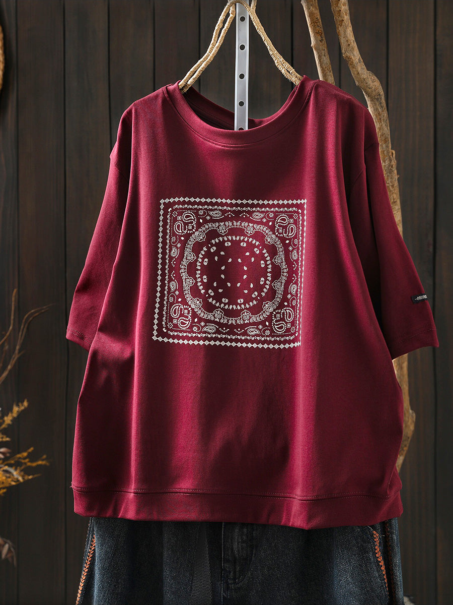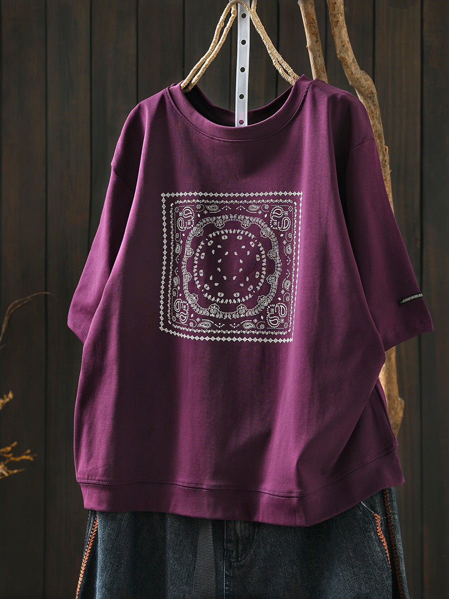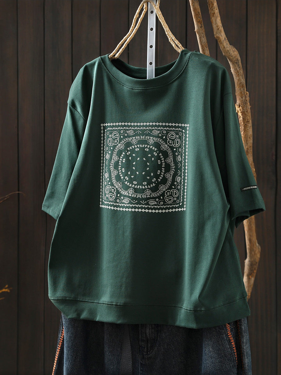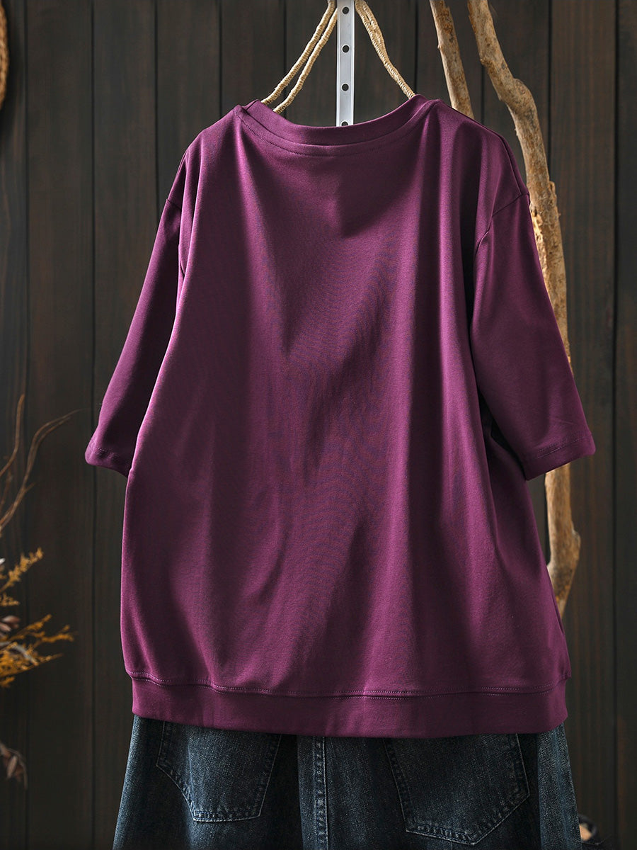 Women Summer Artsy Cotton O-Neck Shirt