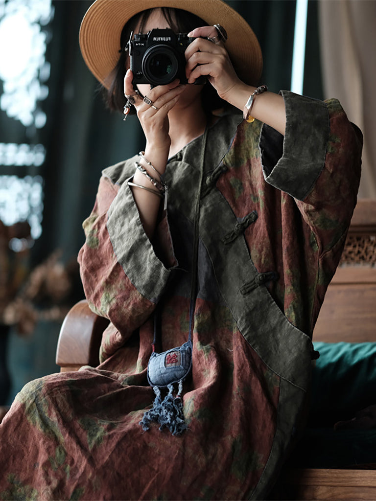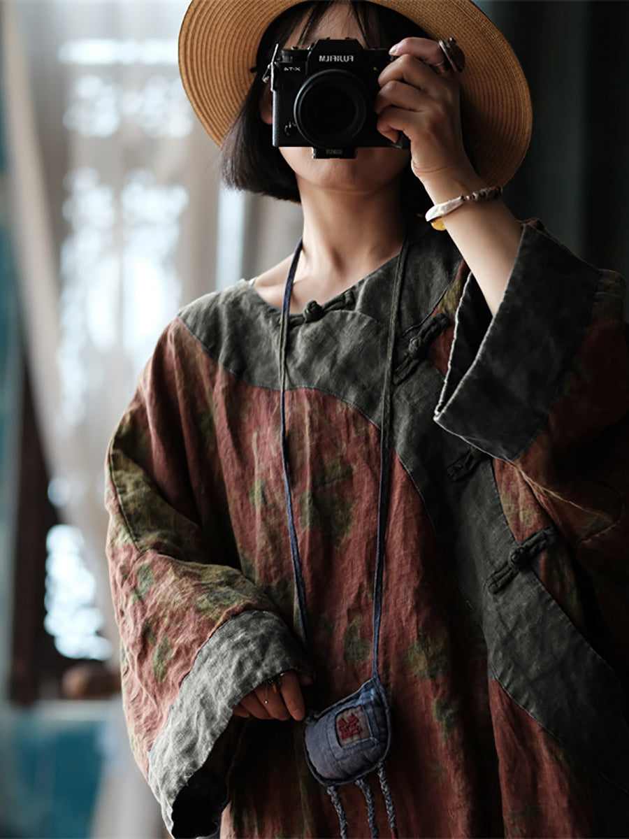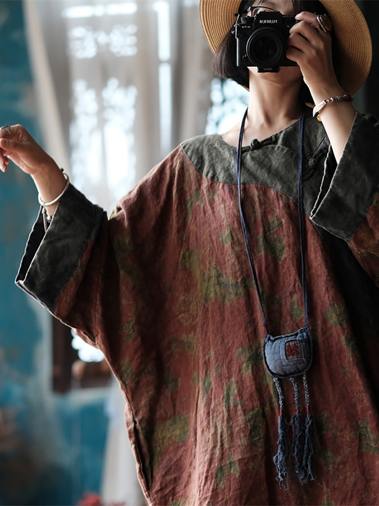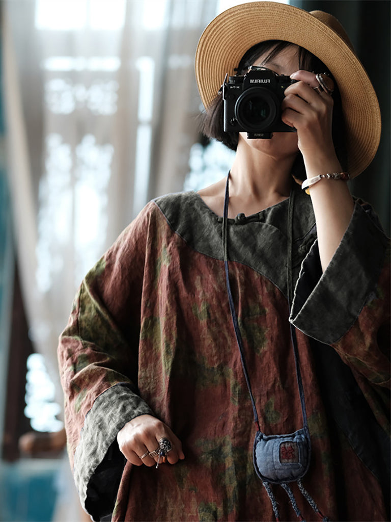 This dress is crafted with 100% Linen and features a flower pattern, O-Neck collar, three quarter raglan sleeves, and a loose vintage style. Perfect for the spring and summer seasons.