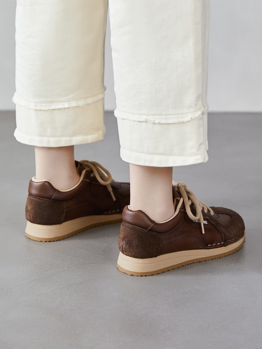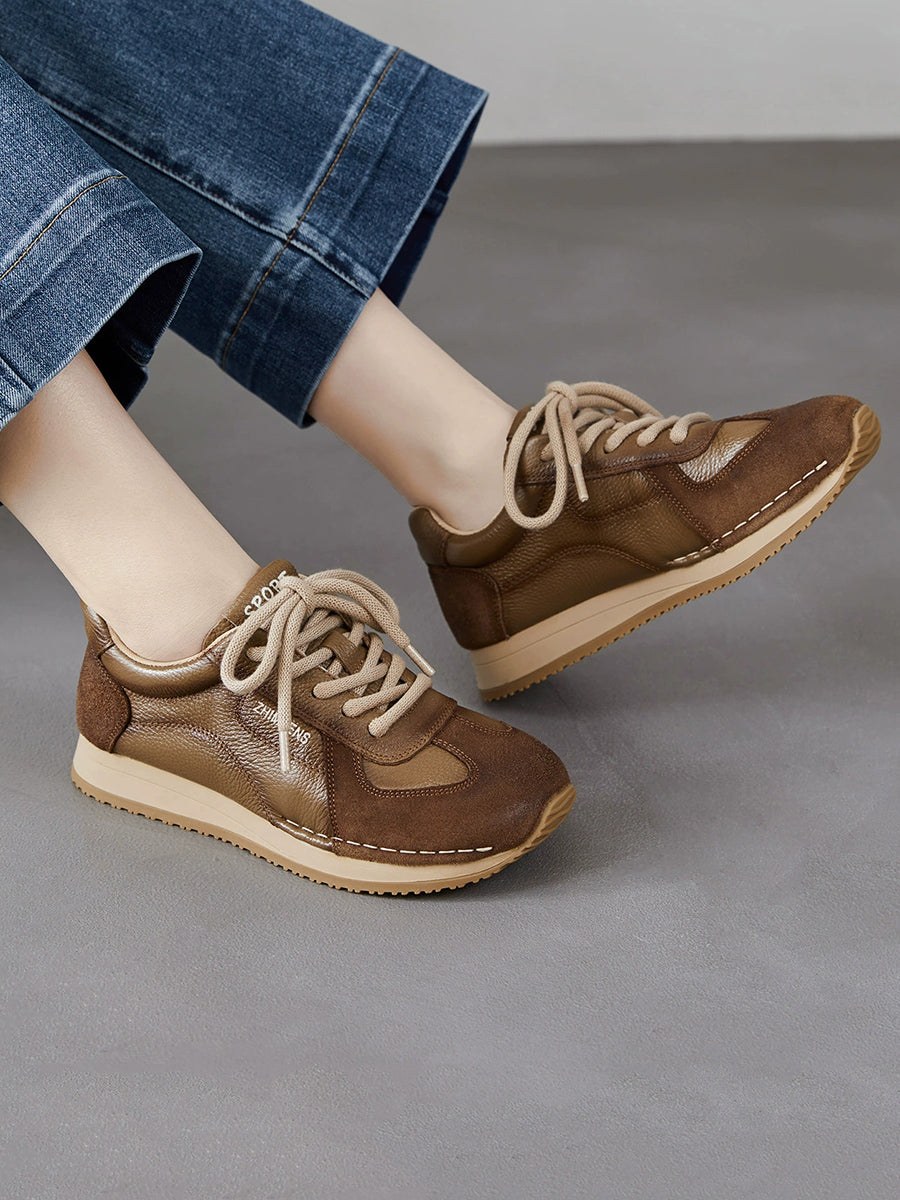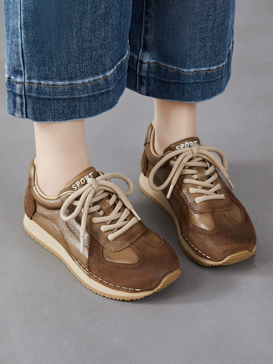 Women Spring Genuine Leather Spliced Sport Shoes