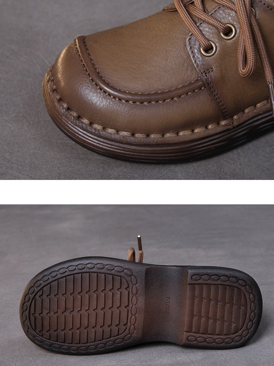 Women Spring Pure Color Genuine Leather Flat Shoes