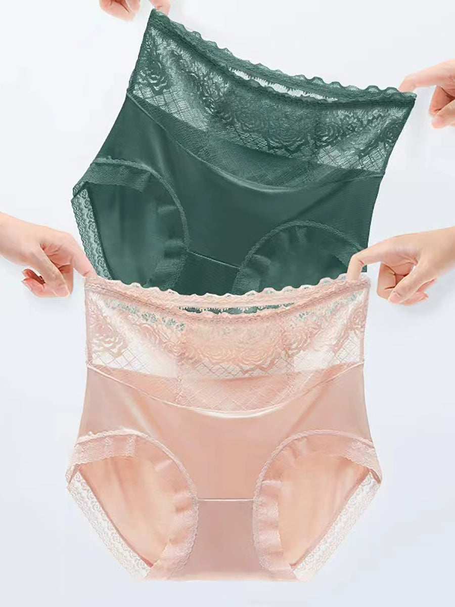 2 Pieces Women Artsy Lace Spliced High Waist Underwear