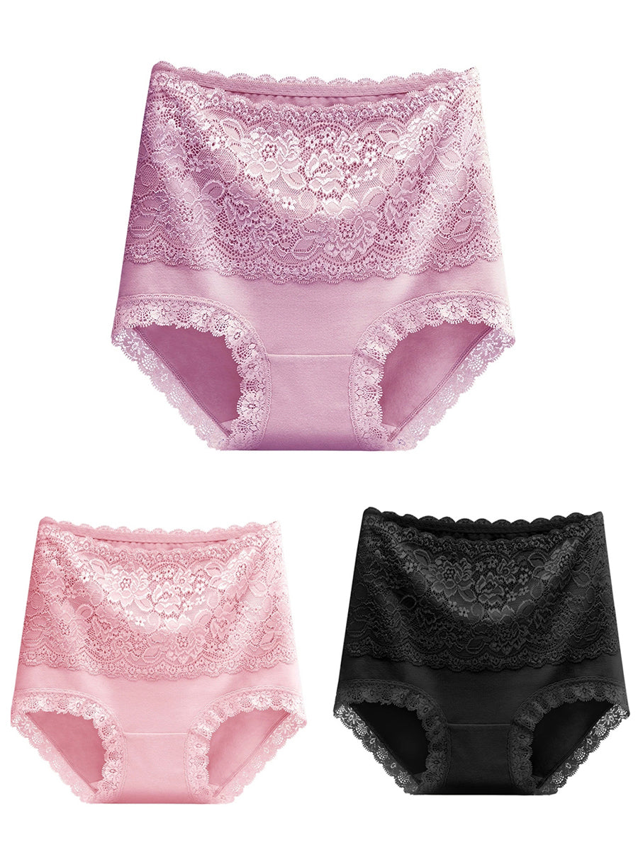 3 Pieces Women Artsy Floral Lace High Waist Underwear