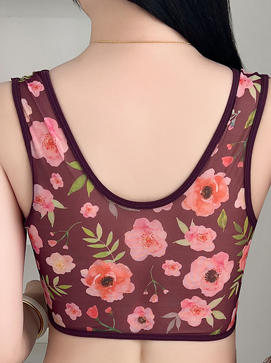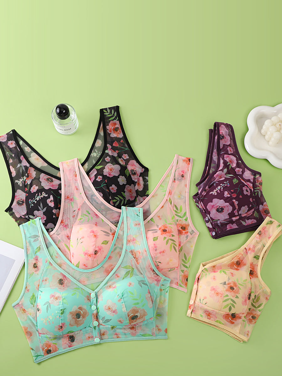 3 Pieces Women Artsy Flower Front Buckle Wireless Bra