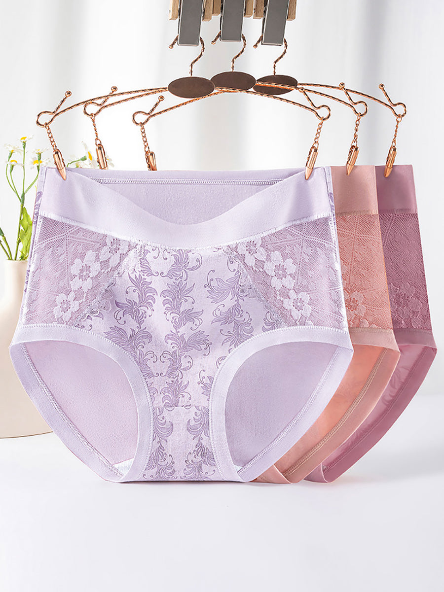 3 Pieces Women Artsy Flower Lace High Waist Underwear
