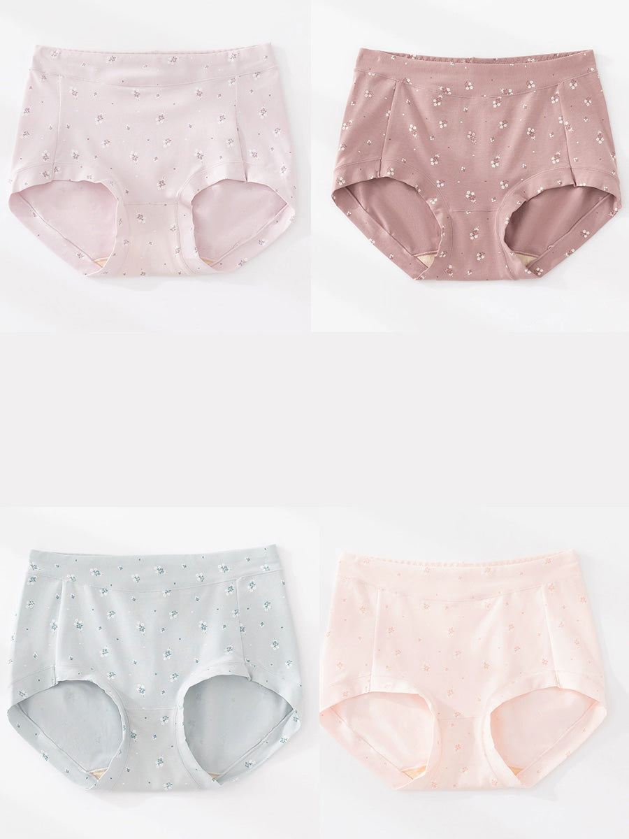 4 Pieces Women Artsy Floral High Waist Underwear
