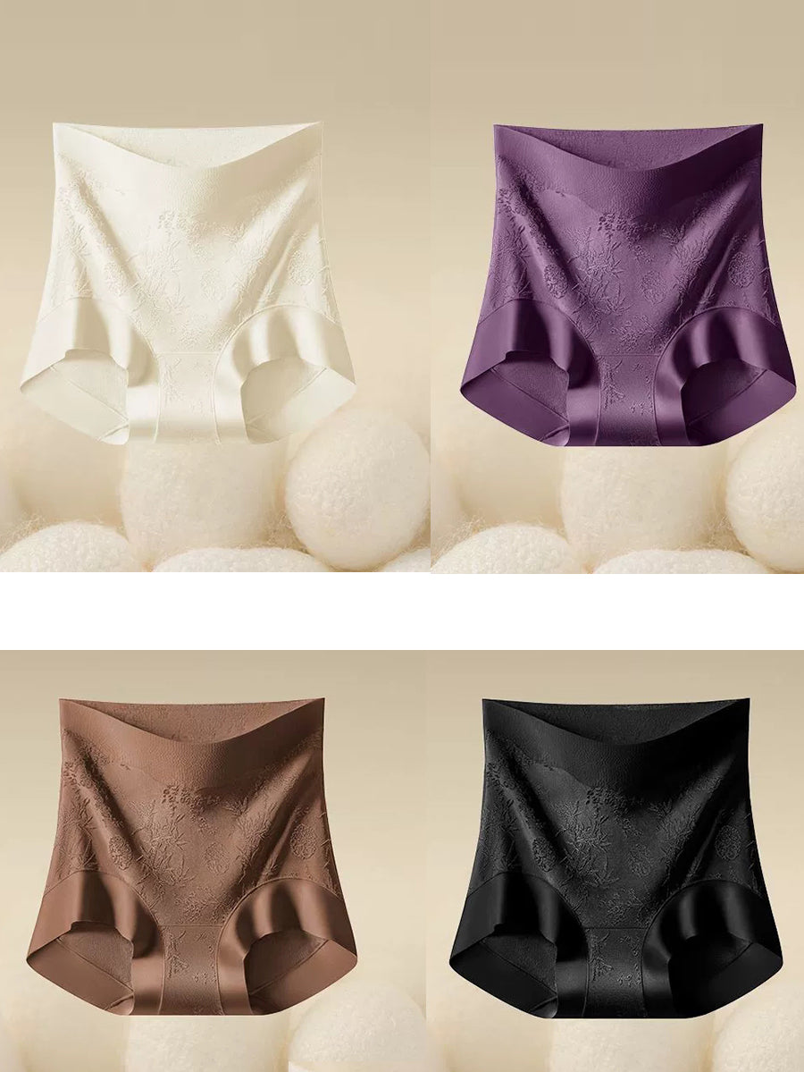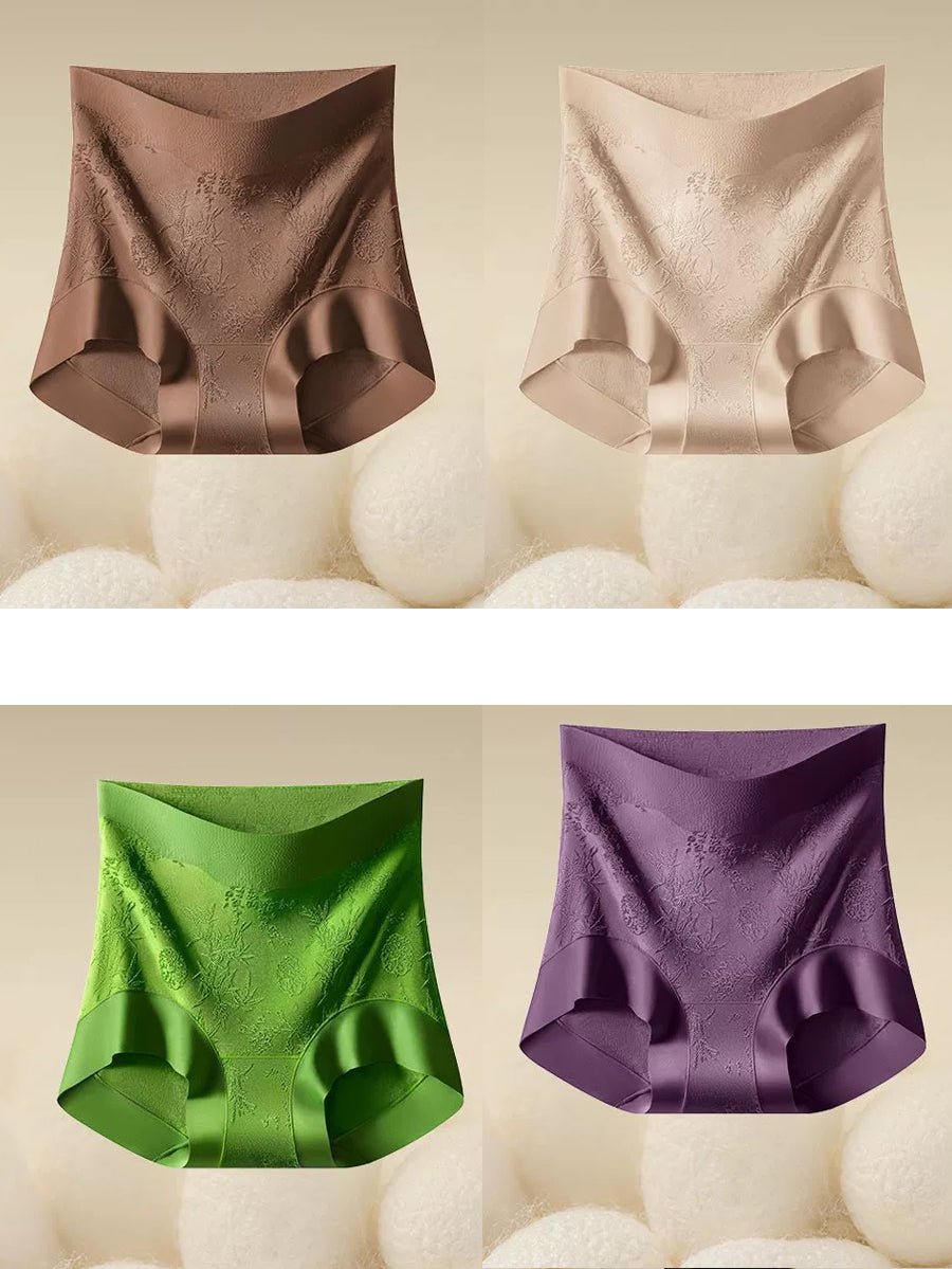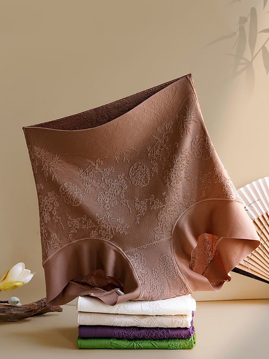 4 Pieces Women Artsy Floral Jacquard High Waist Underwear