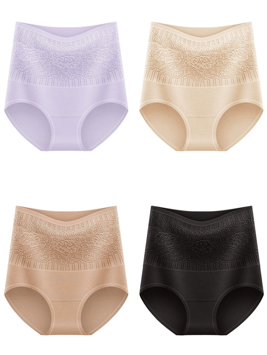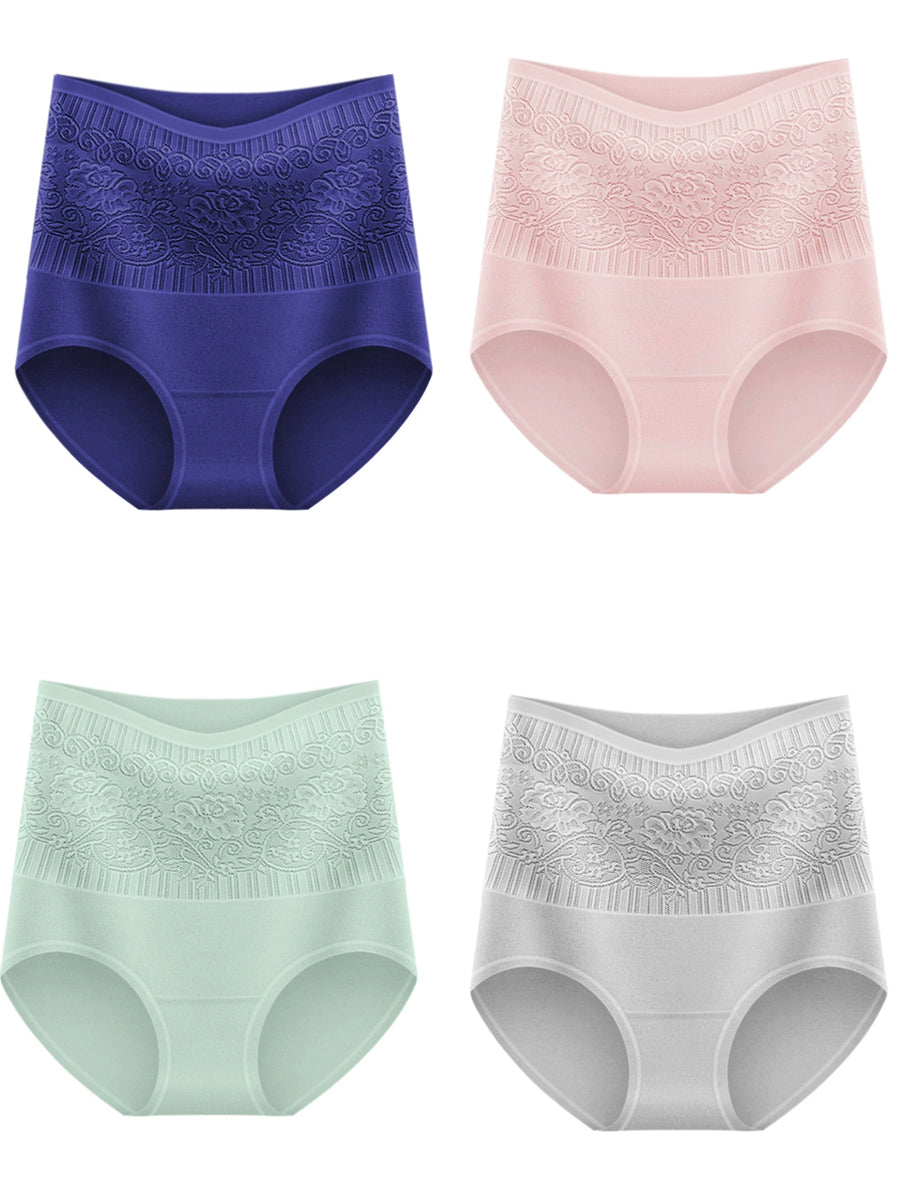 4 Pieces Women Artsy Flower High Waist Underwear
