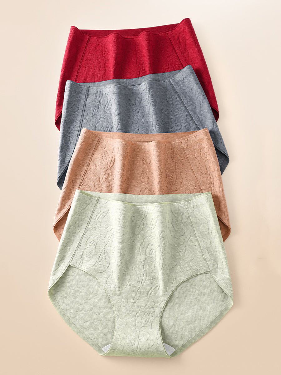 4 Pieces Women Artsy Flower Jacquard High Waist Underwear