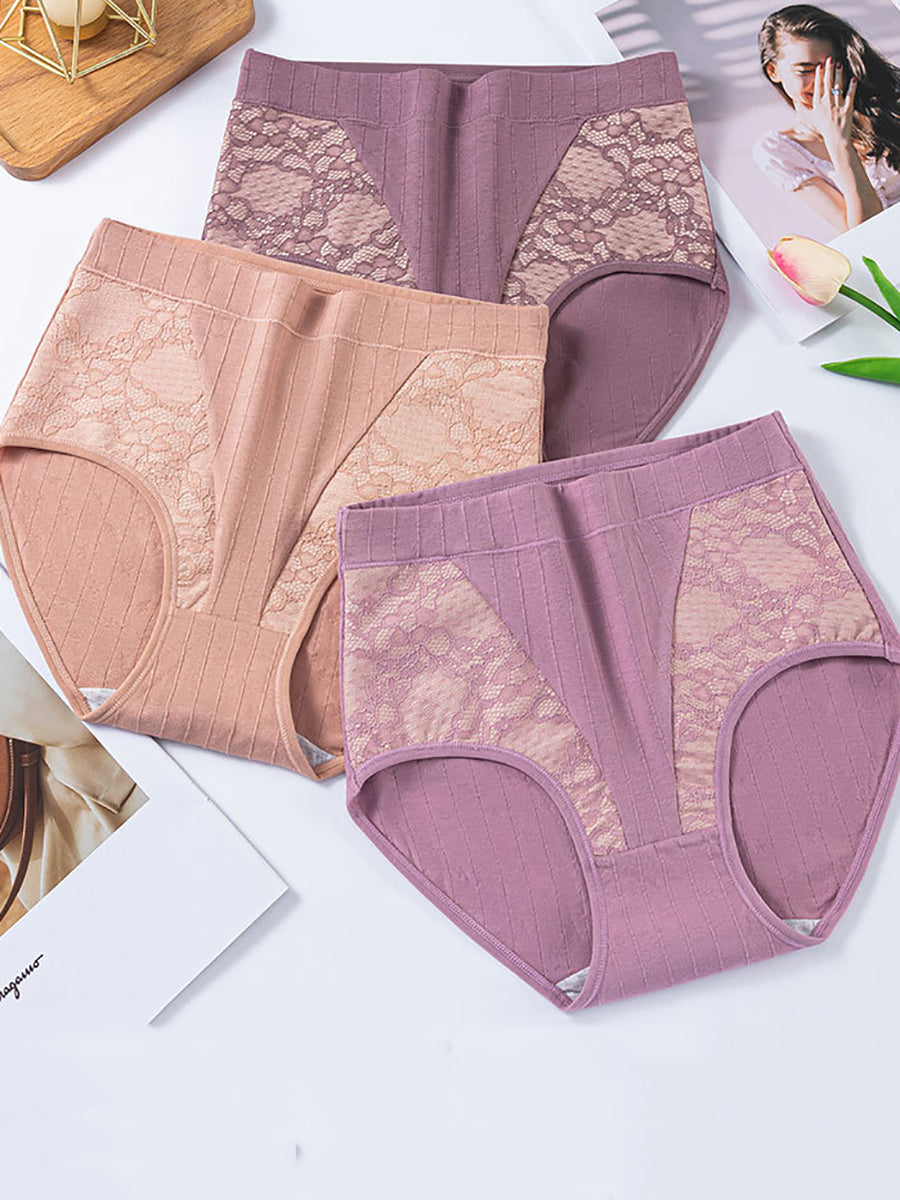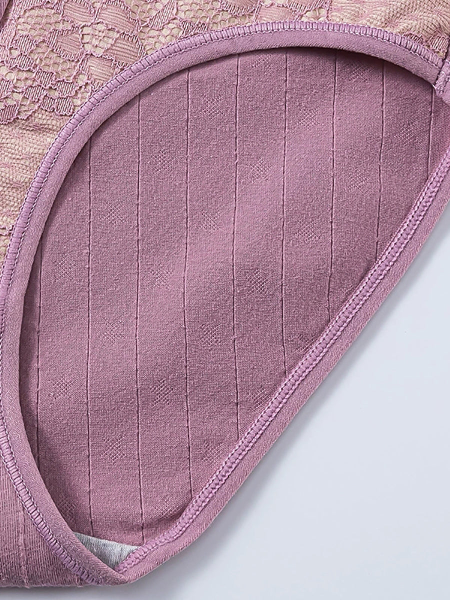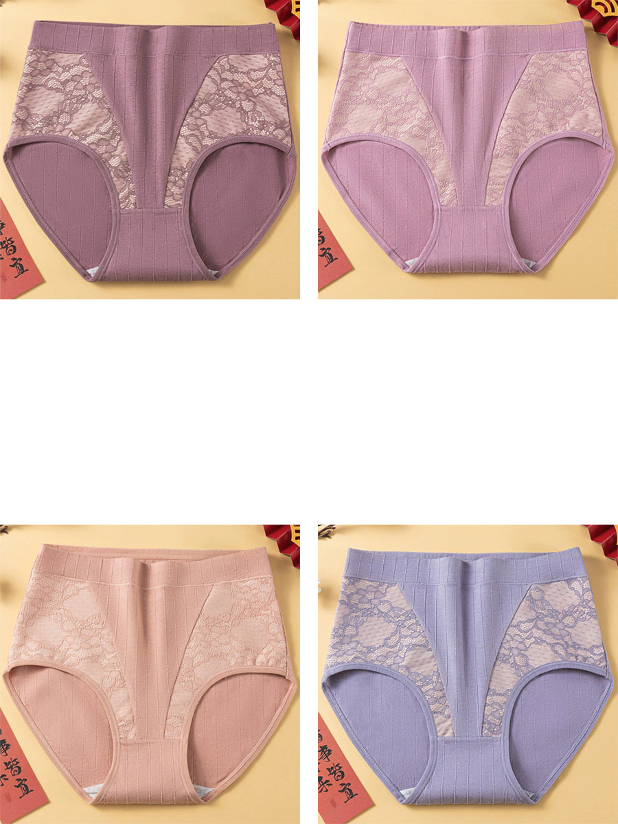 4 Pieces Women Artsy Flower Lace High Waist Underwear