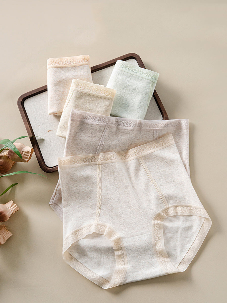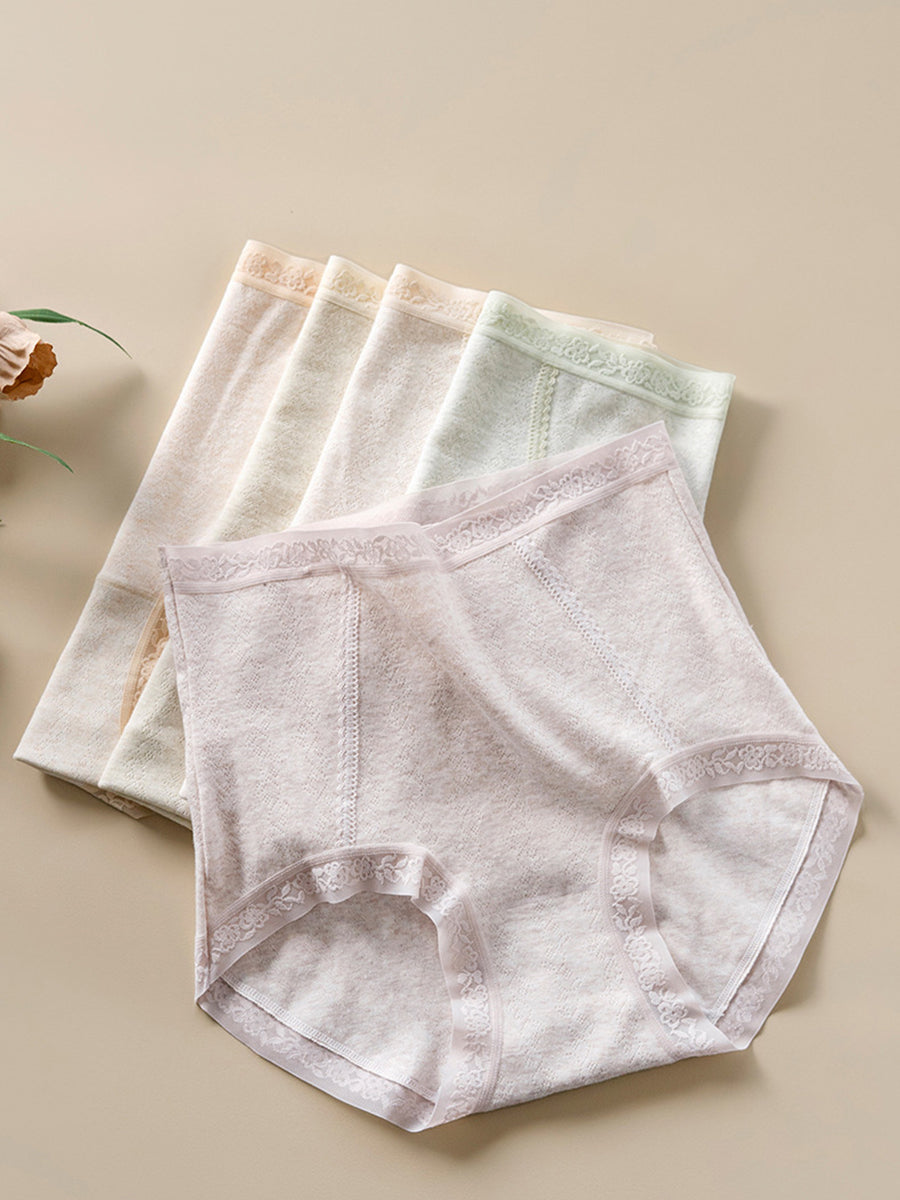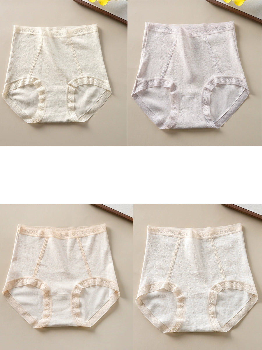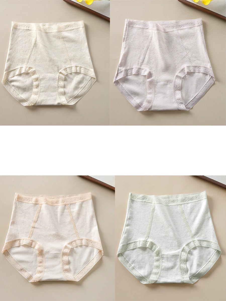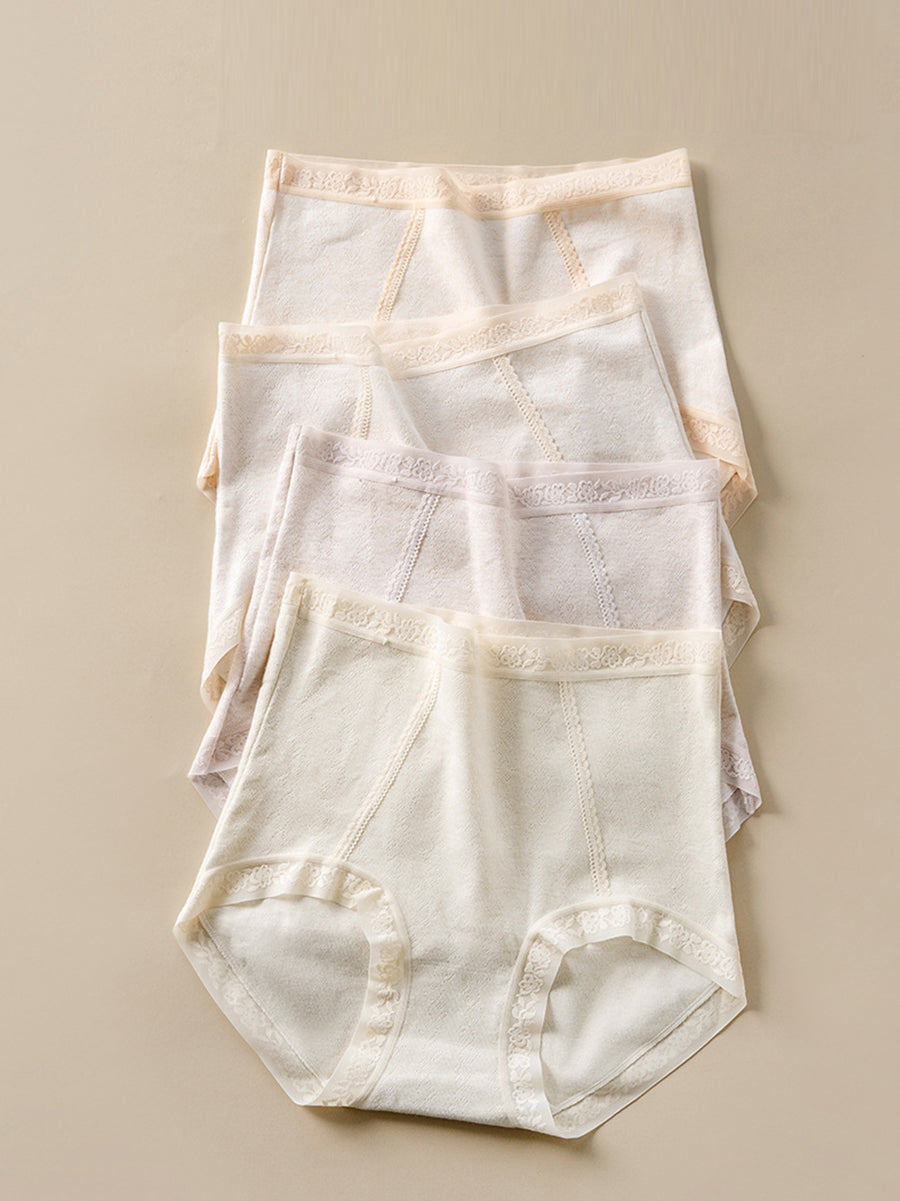 4 Pieces Women Artsy Pure Color High Waist Underwear