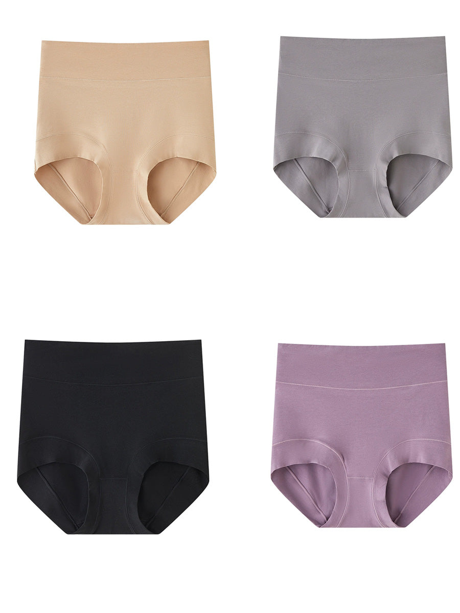 4 Pieces Women Artsy Pure Color High Waist Underwear