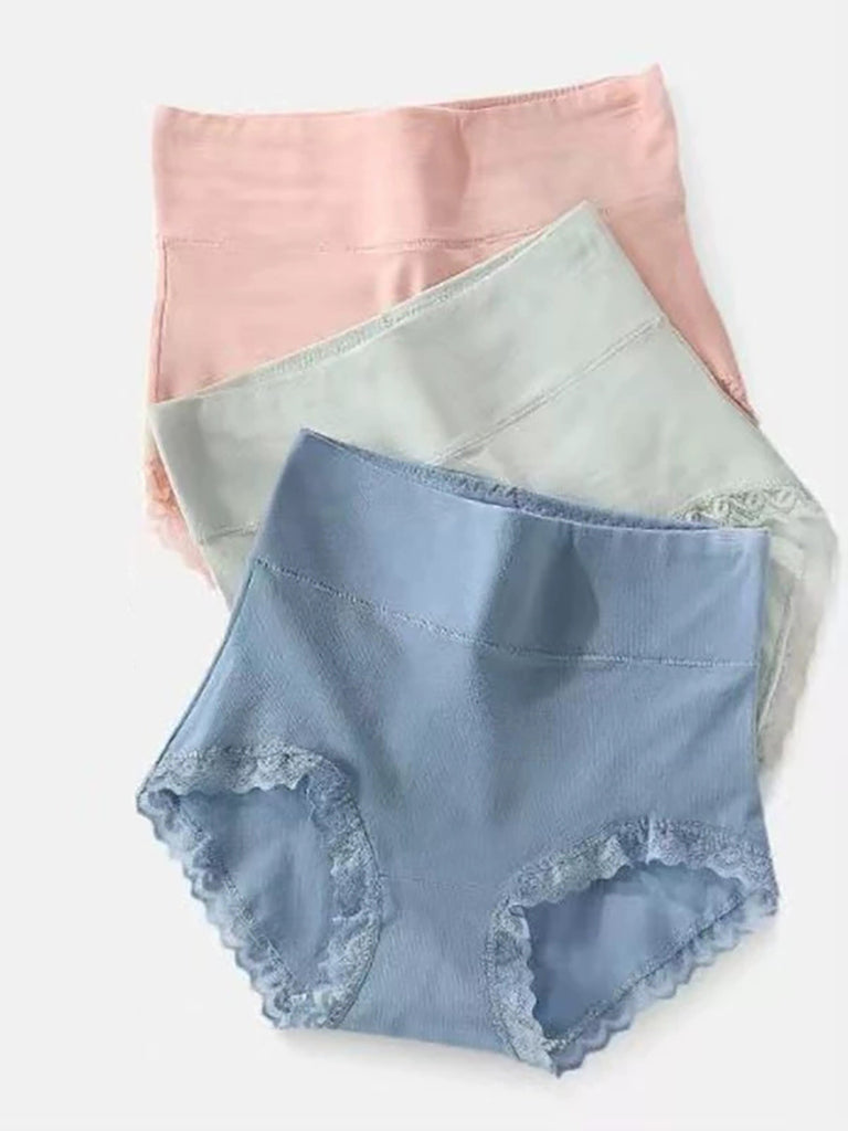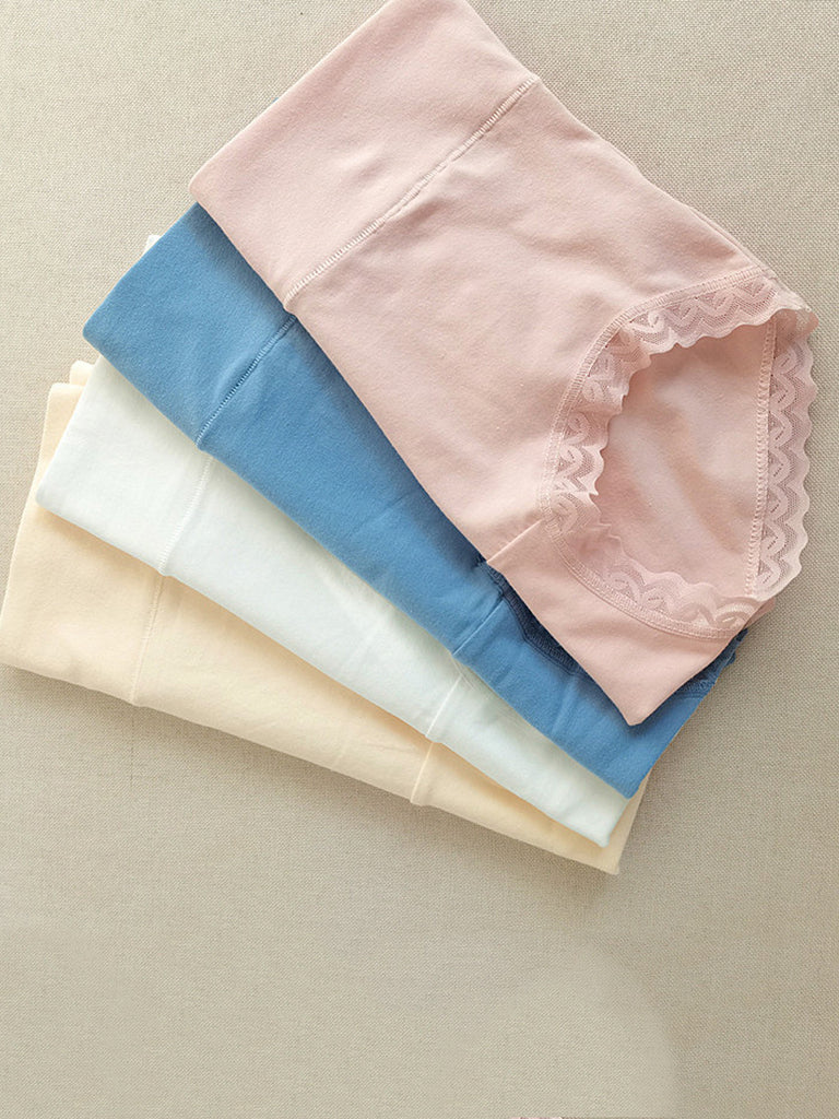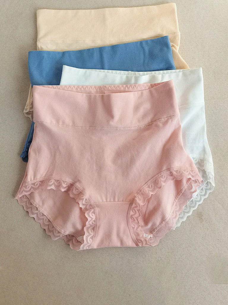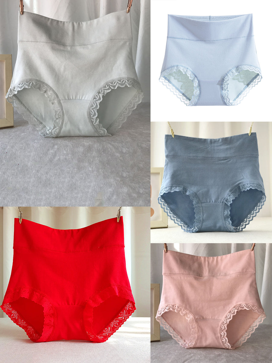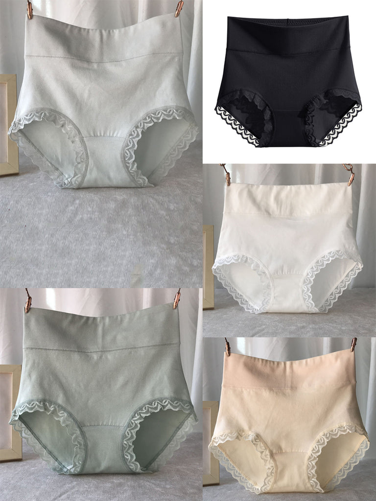 5 Pieces Women Casual Pure Color High Waist Lace Underwear