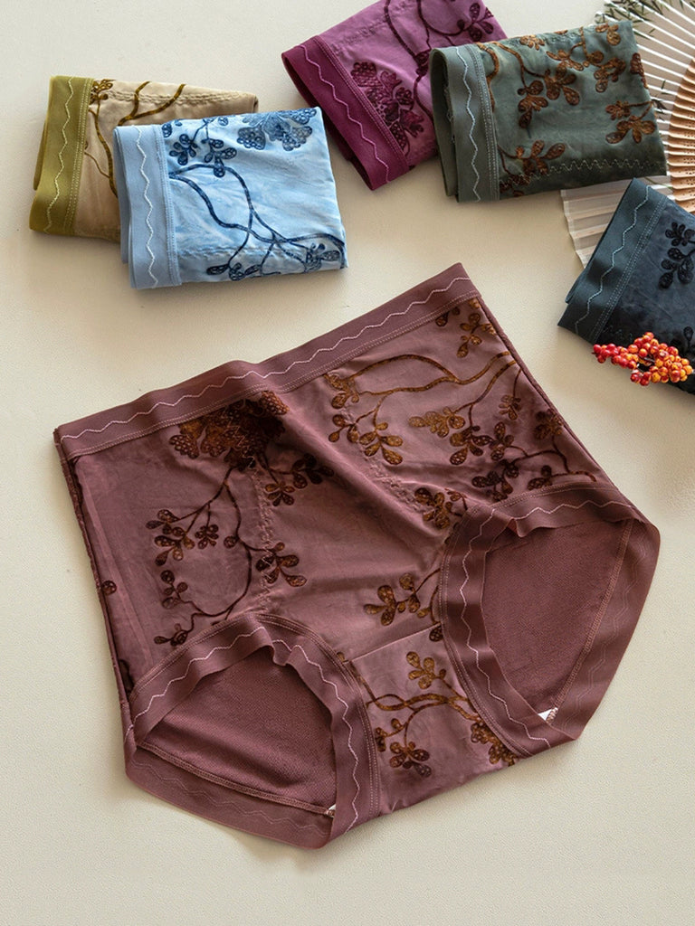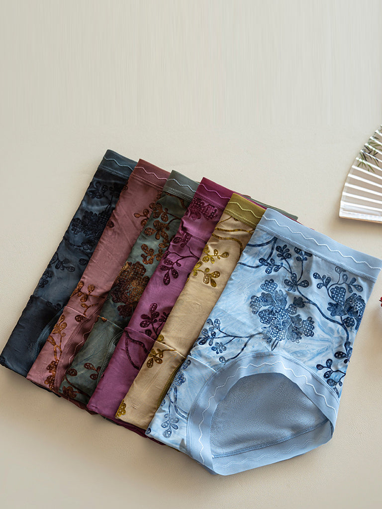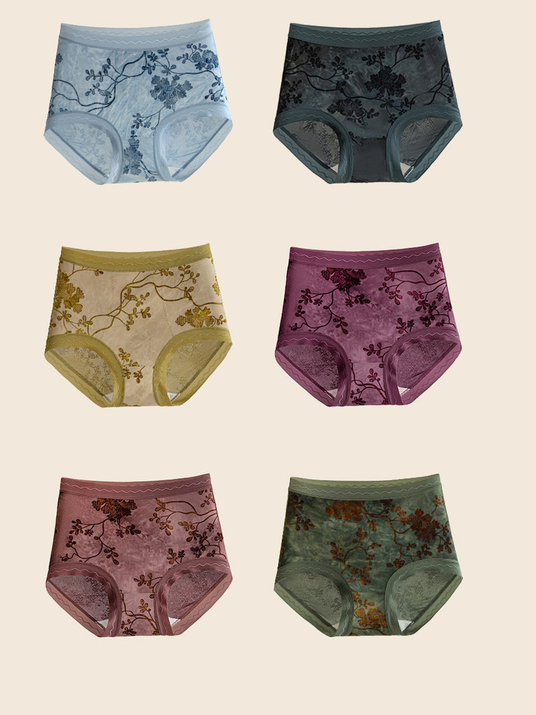 6 Pieces Women Flower Jacquard High Waist Underwear