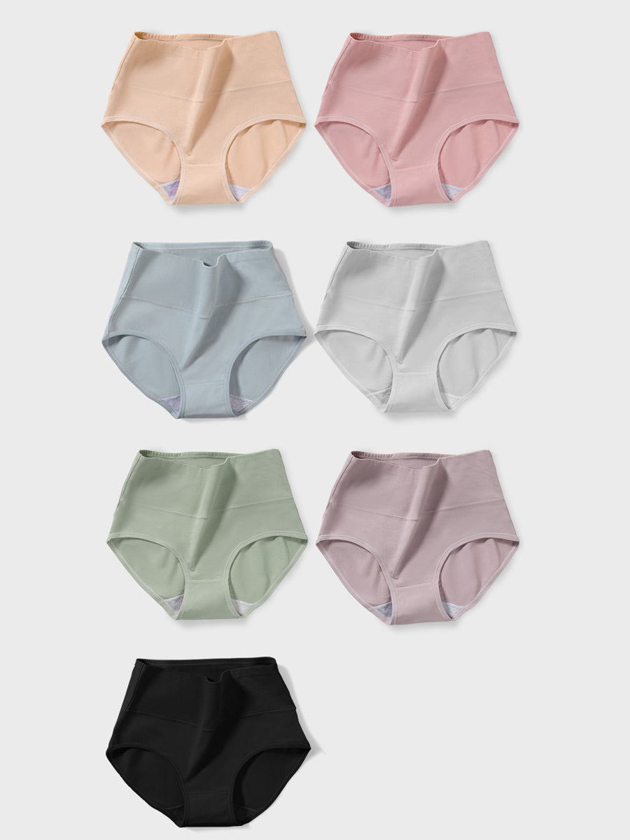 7 Pieces Women Pure Color High Waist Underwear