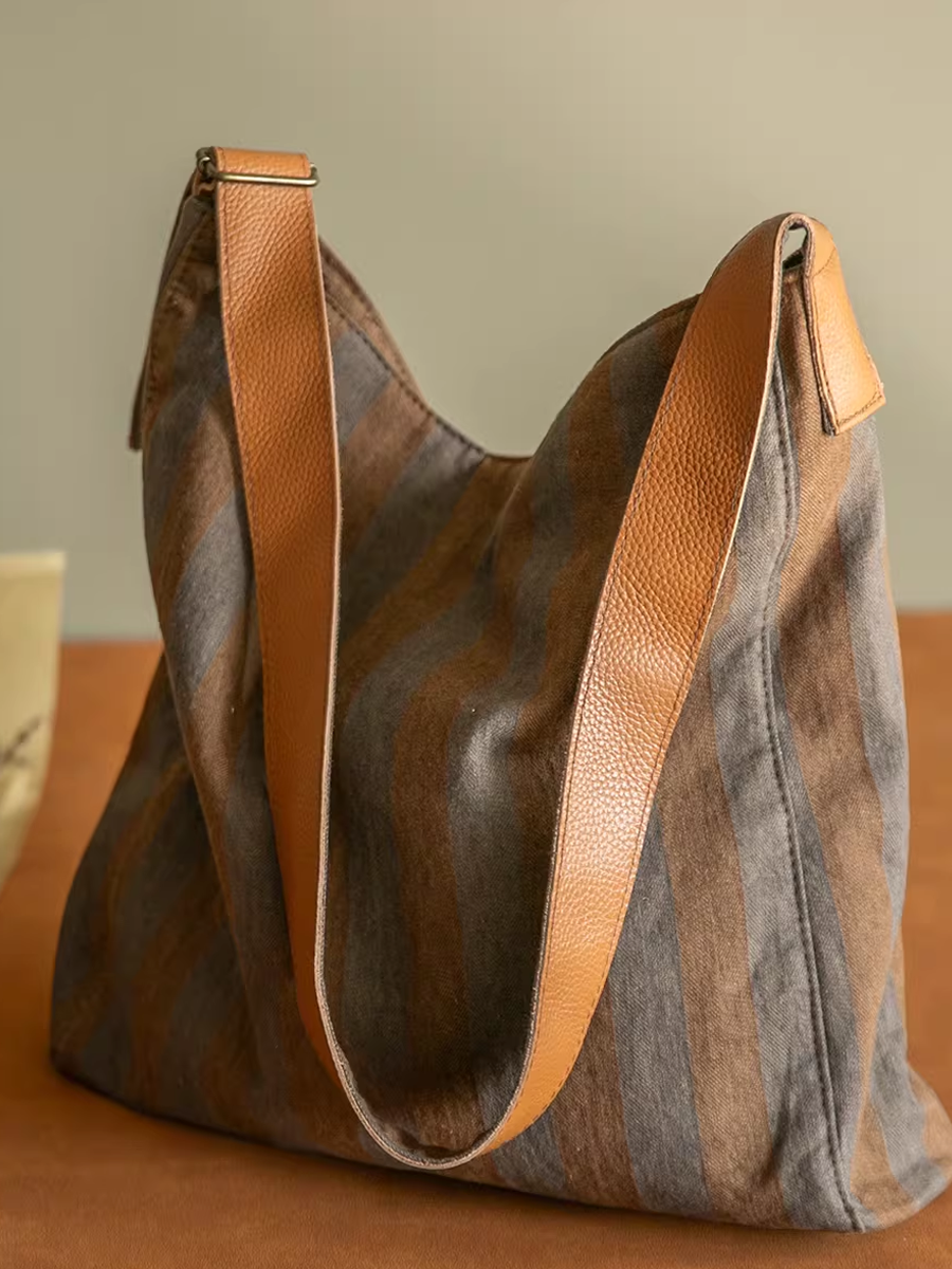 Casual Vintage Wash Colorblocking Stripe Canvas Bag