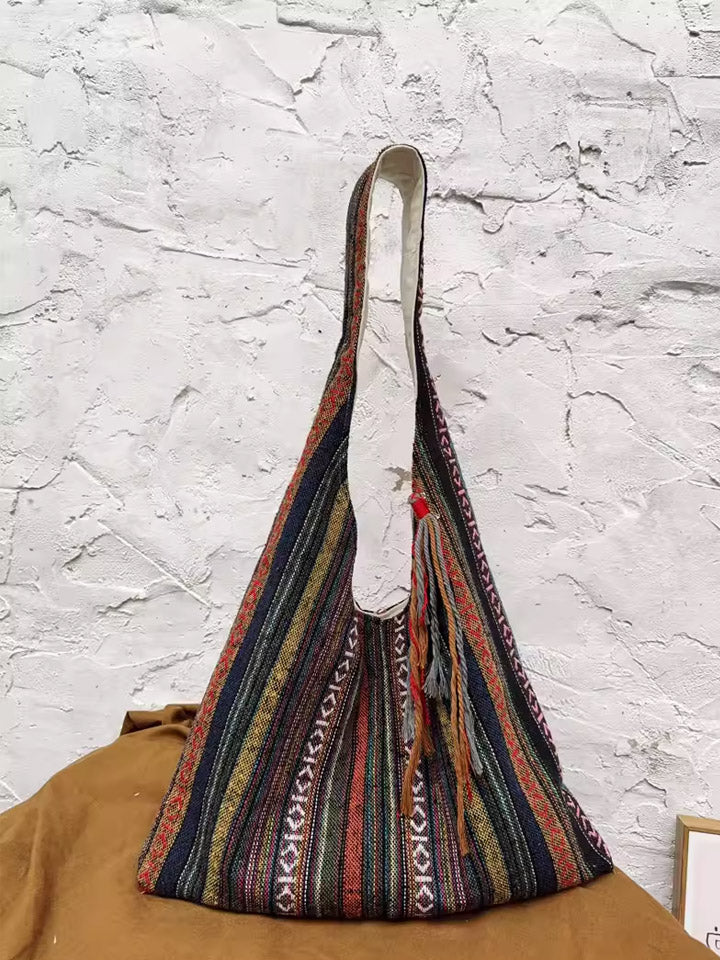 Ethnic Color-Blocking Stripe Shoulder Bag
