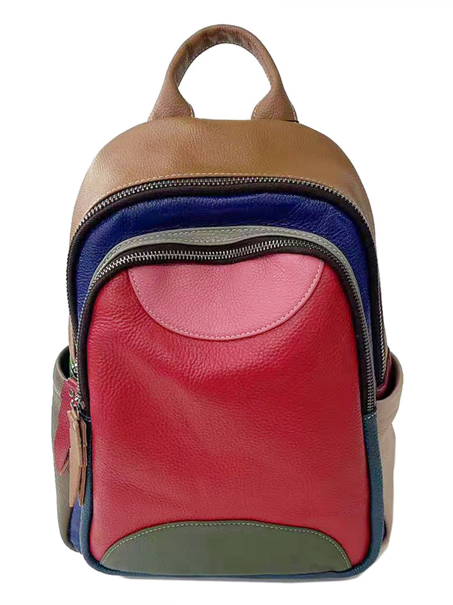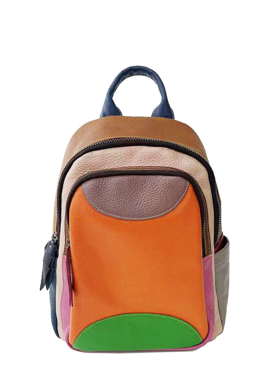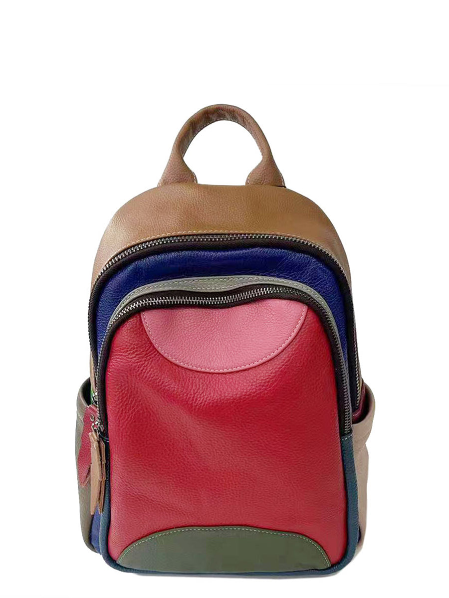 Fashion Colorblock Spliced Leather Backpack