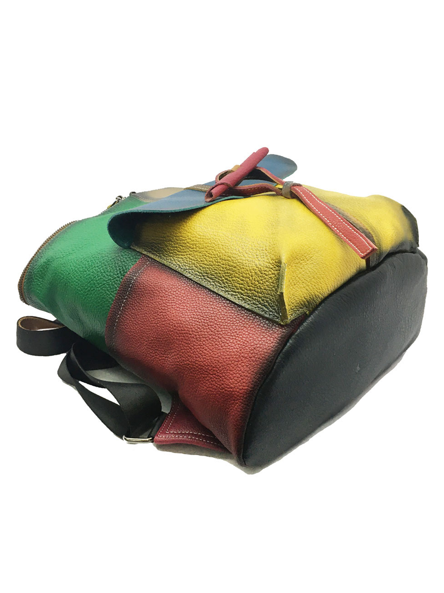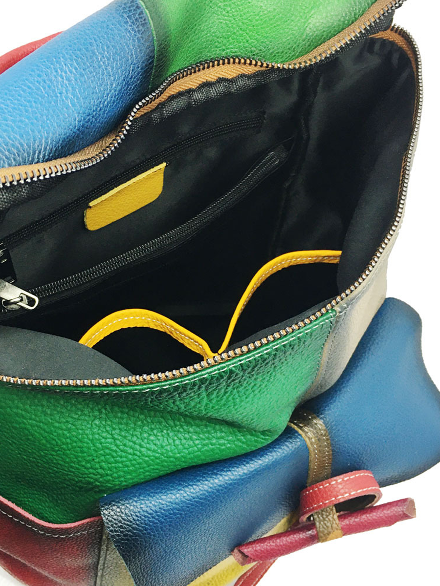 Retro Genunie Leather Colorblock Large Capacity Backpack