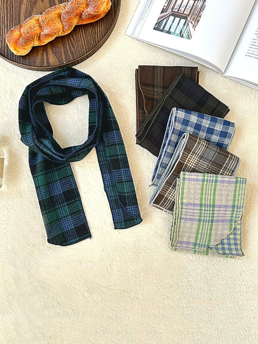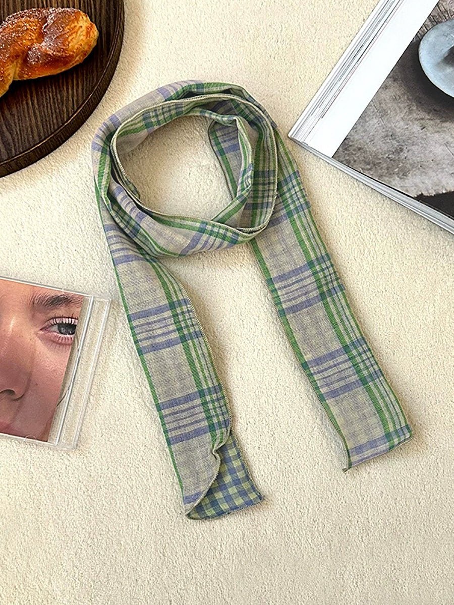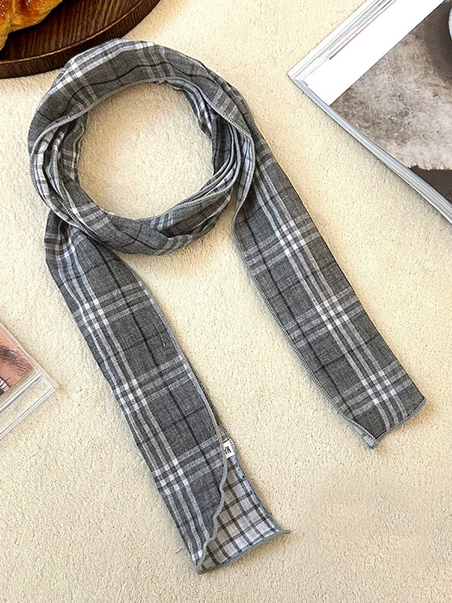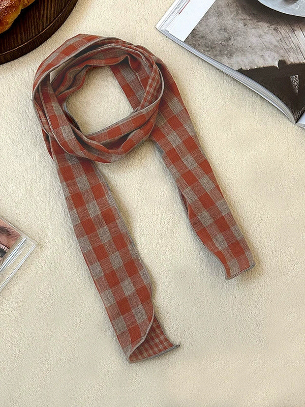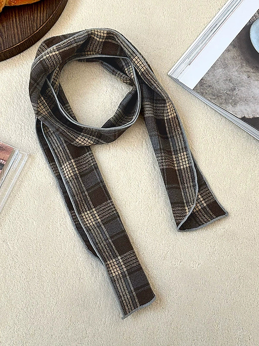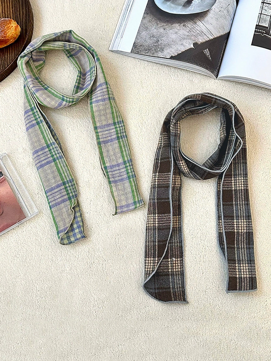 Vintage Plaid Thin Narrow Versatile Scarf