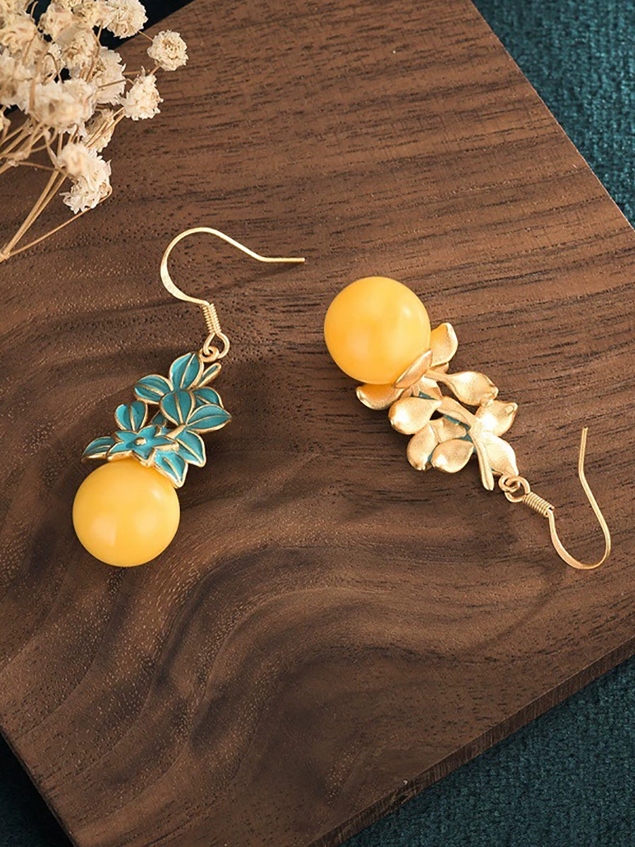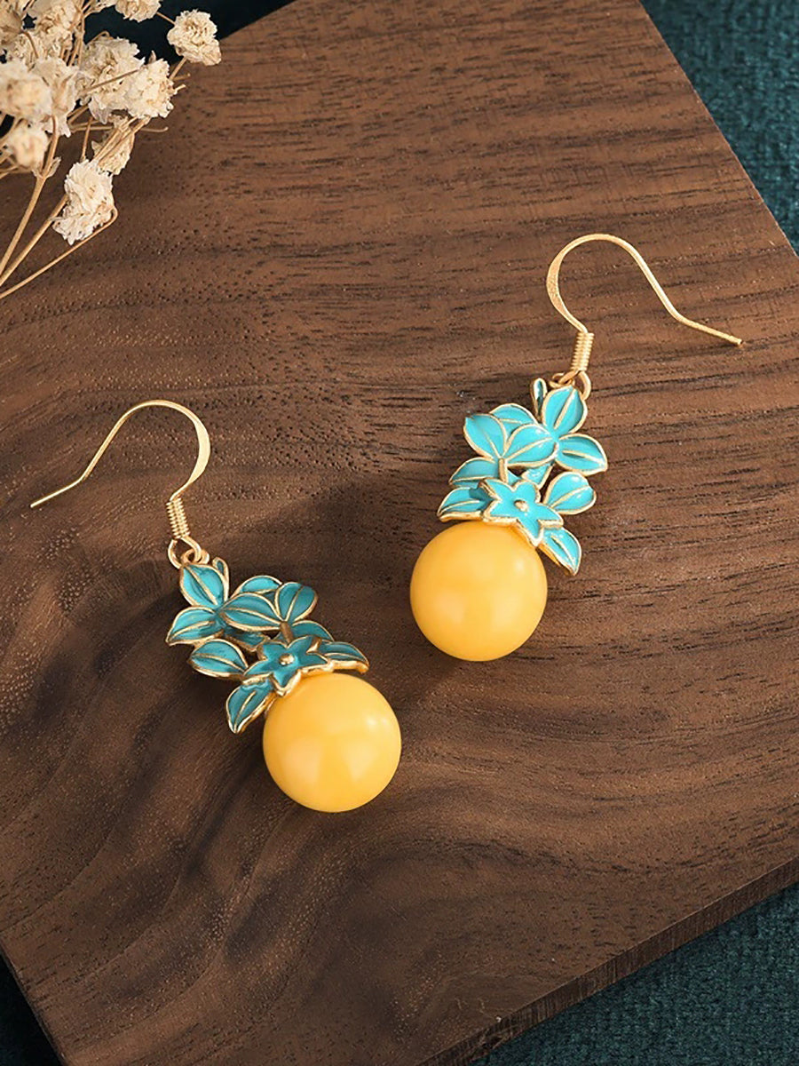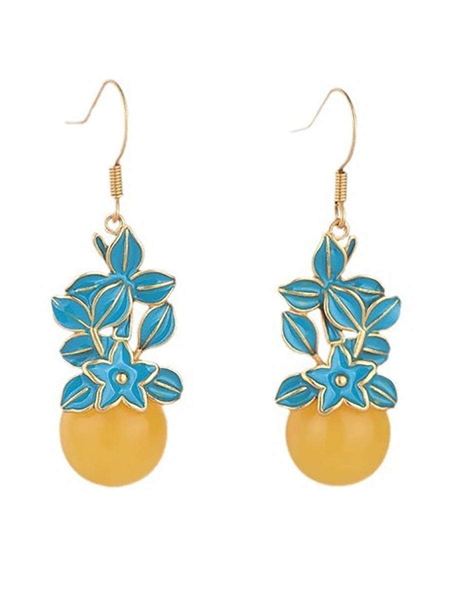 Vintage Wax Beads Enamel Flower Alloy Earrings