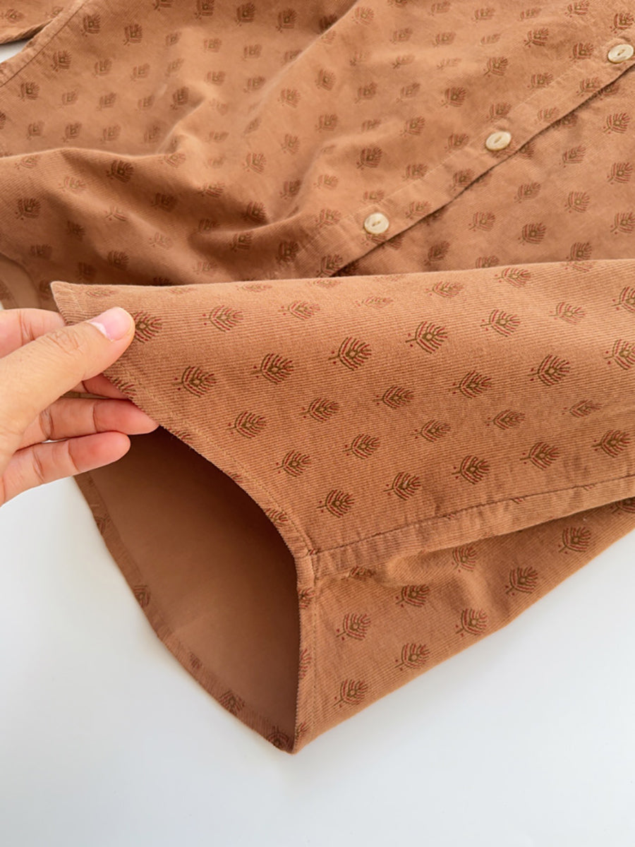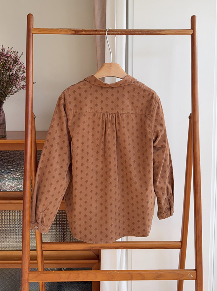 Women Artsy Autumn Flower Turn-down Collar Corduroy Shirt