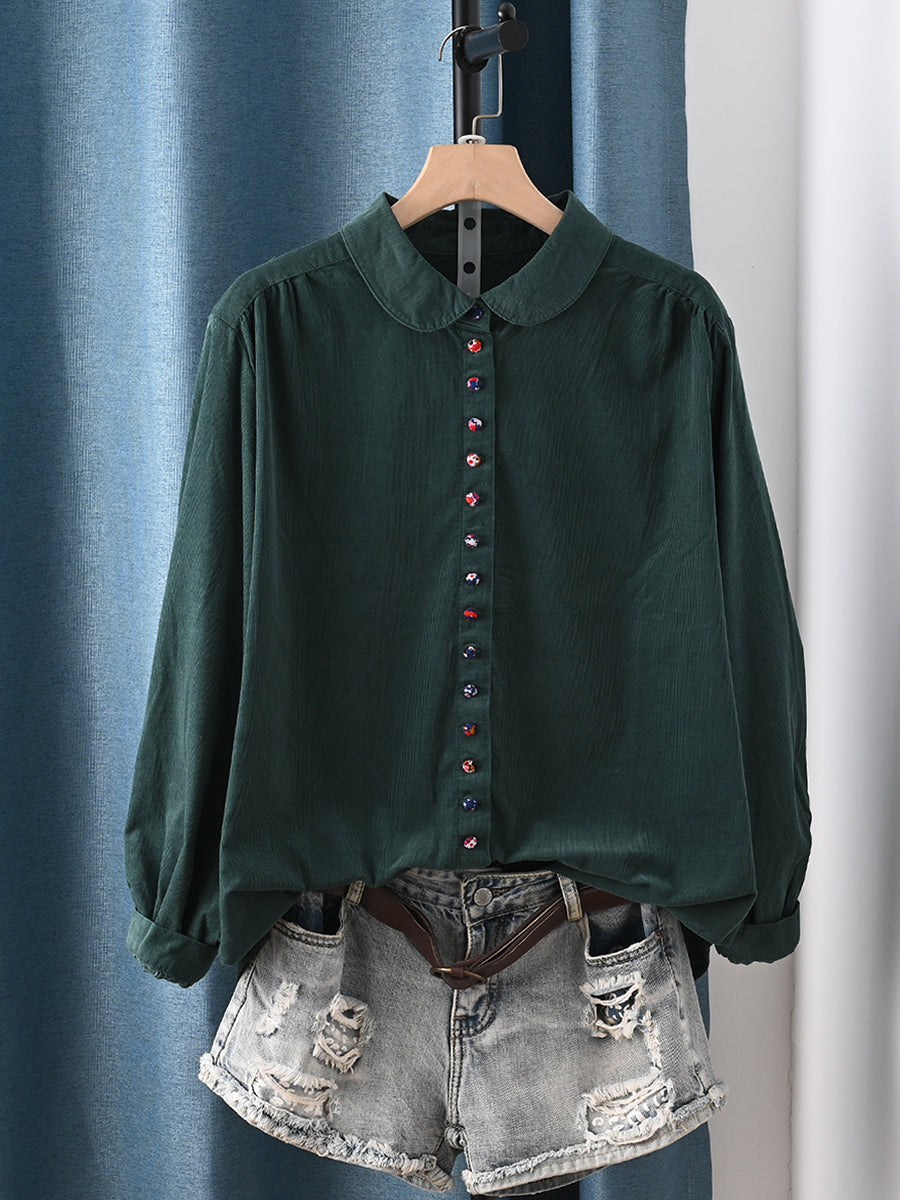 Women Artsy Colorful Button Corduroy Shirt