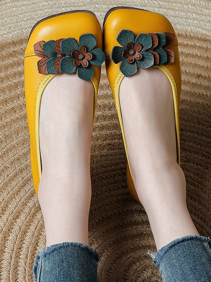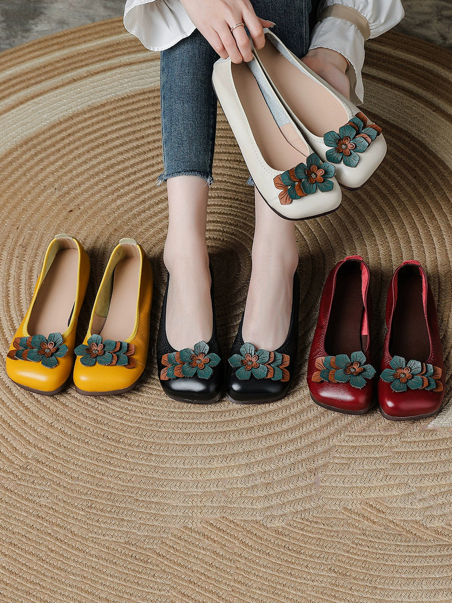 Women Artsy Flower Spliced Genuine Leather Shoes