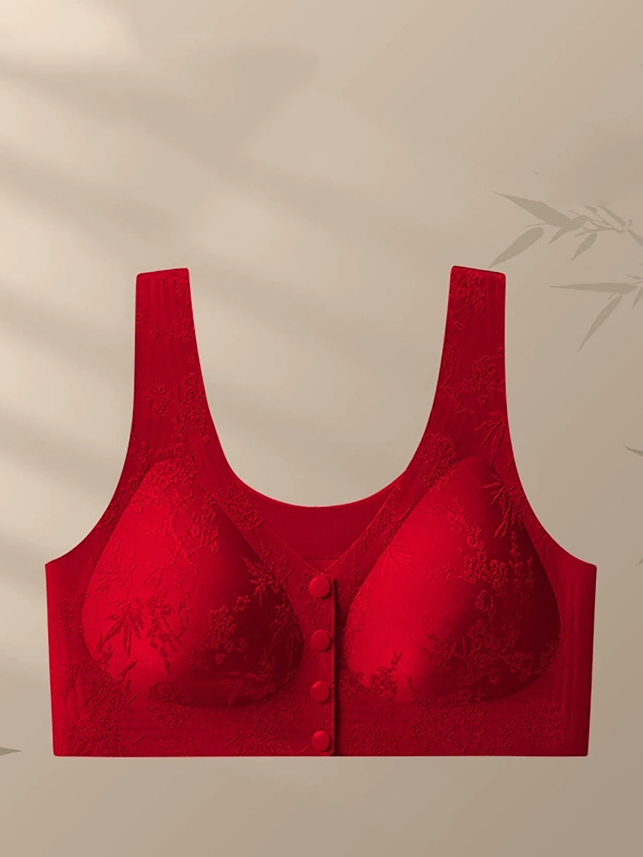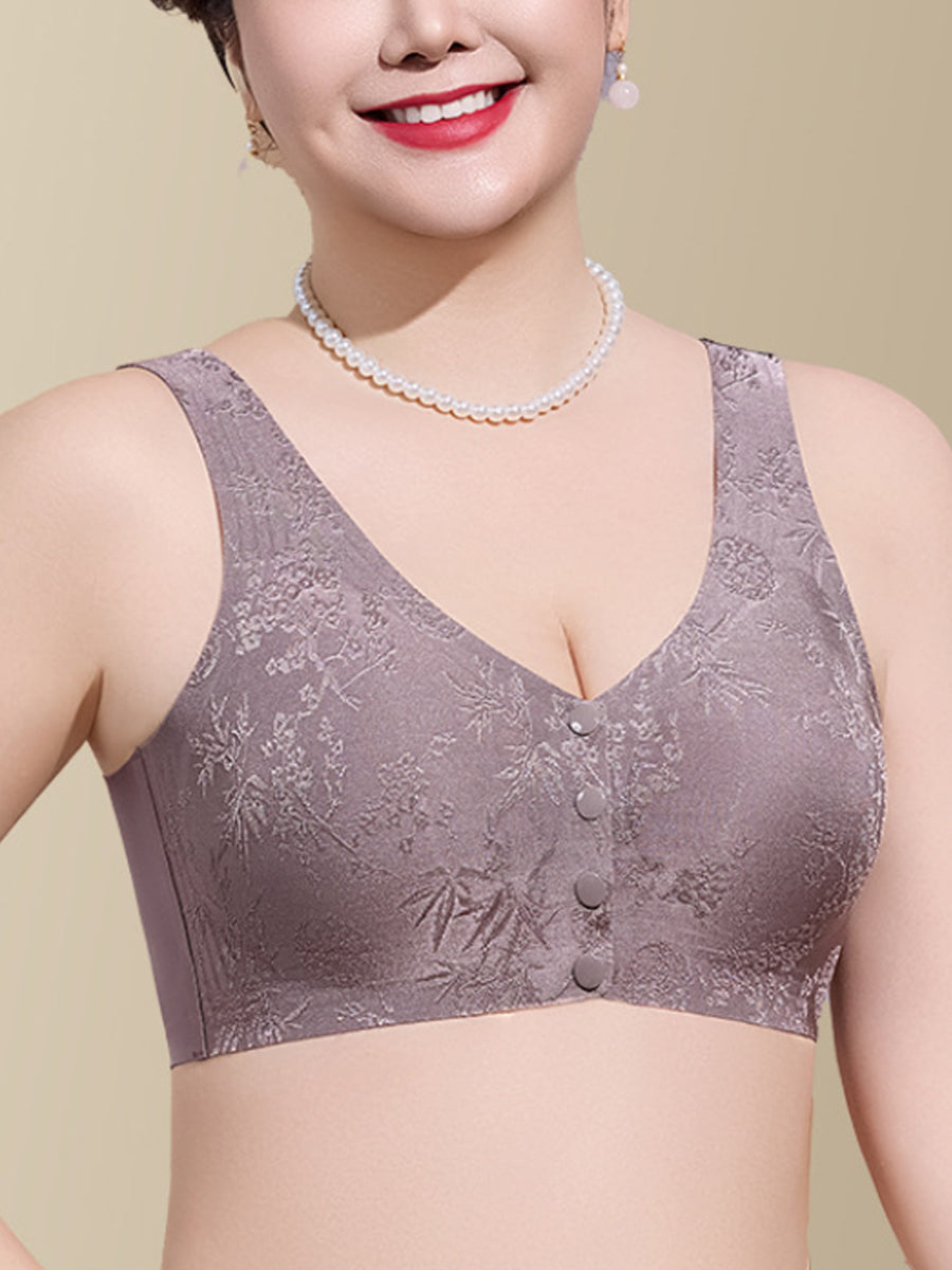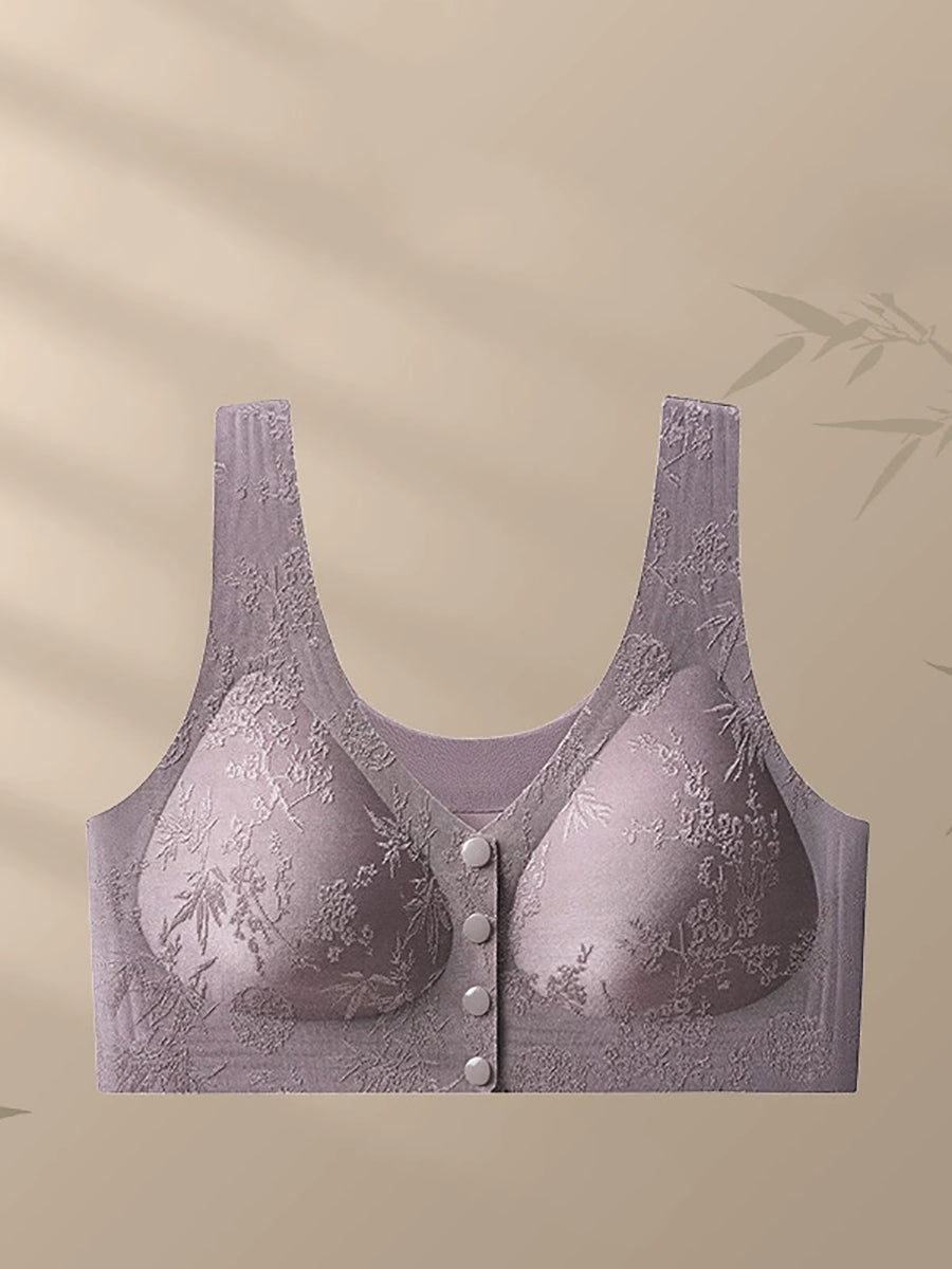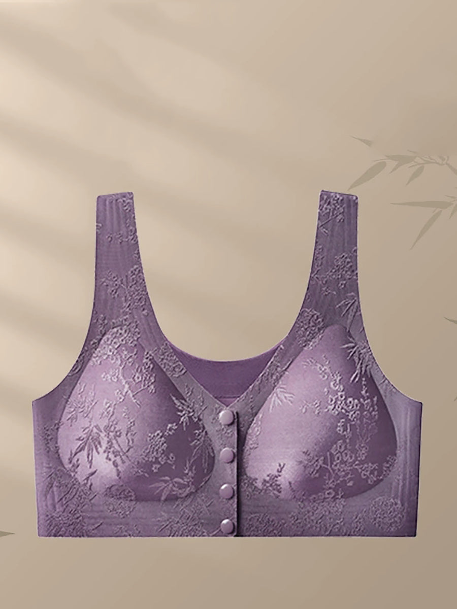 Women Artsy Jacquard Front-buckle Wireless Bra
